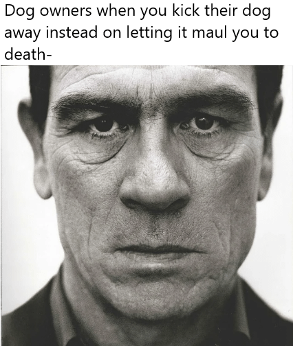 This is an especially good meme, because there was a Reddit post last year where a user talked about how they acted as security on the set of a movie where they had an altercation with Tommy Lee-Jones because TLJ’s dog escaped from a trailer and was on the loose. The guy ended up fired because of it. TLJ sounds like an asshole!