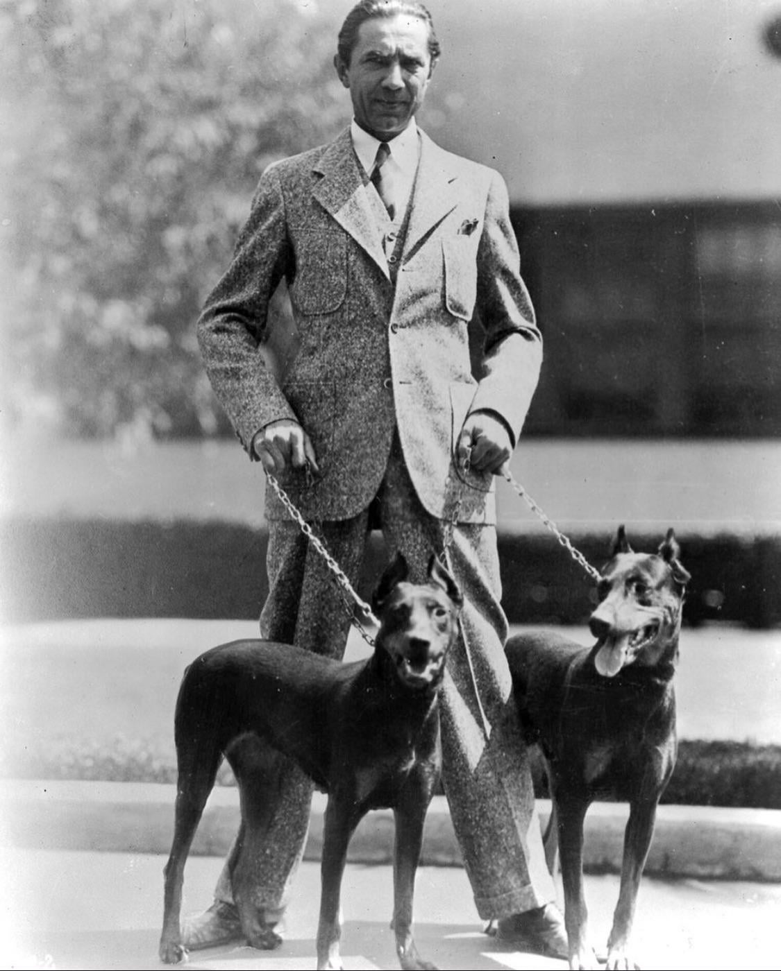 Bela Lugosi, the most famous Dracula actor of all time, walking his dogs in the 1940s by Mad_Season_1994
