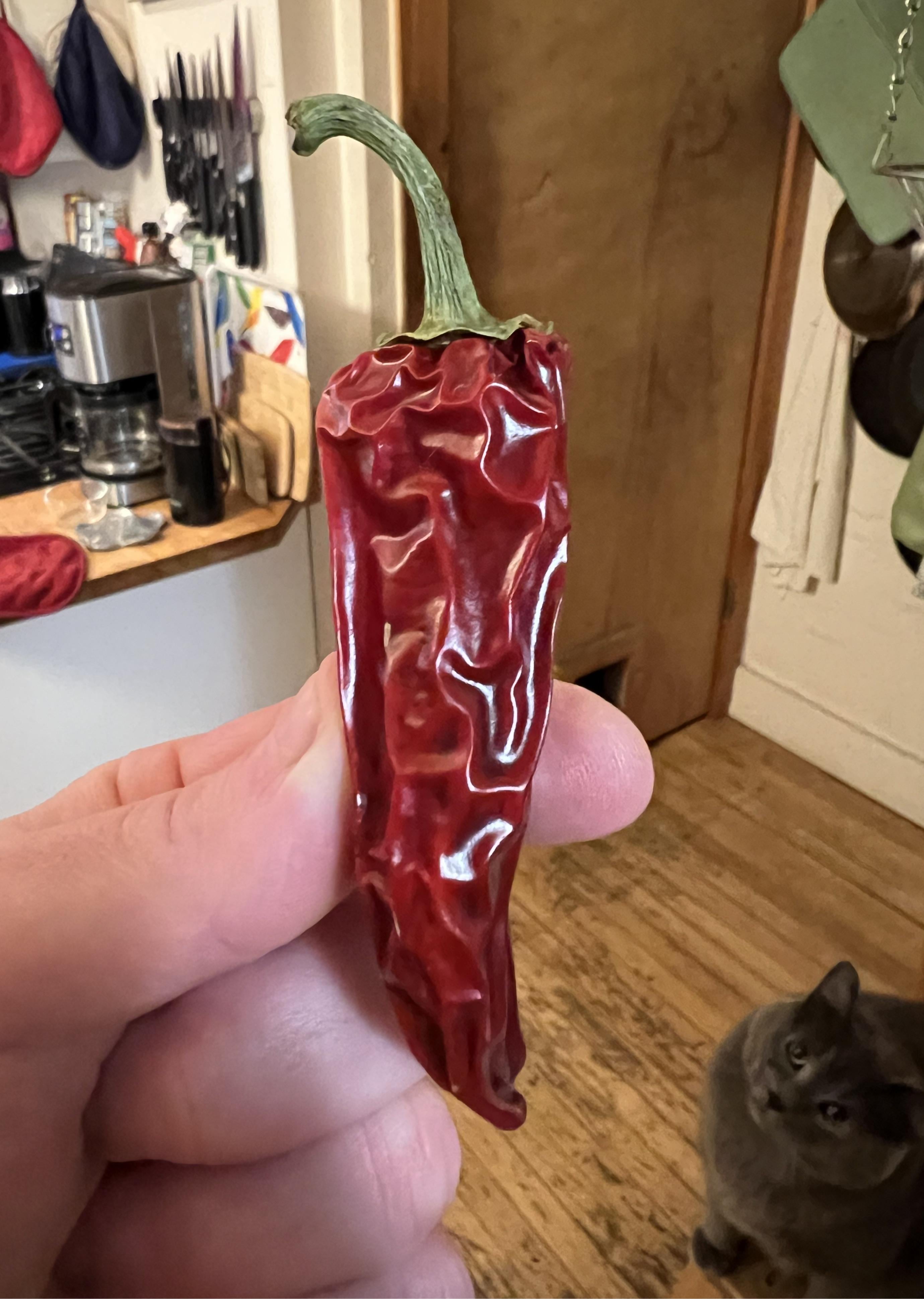 Peppers just do this. You can just hang them up and they’ll dry eventually like that. It’s how many countries preserve them.