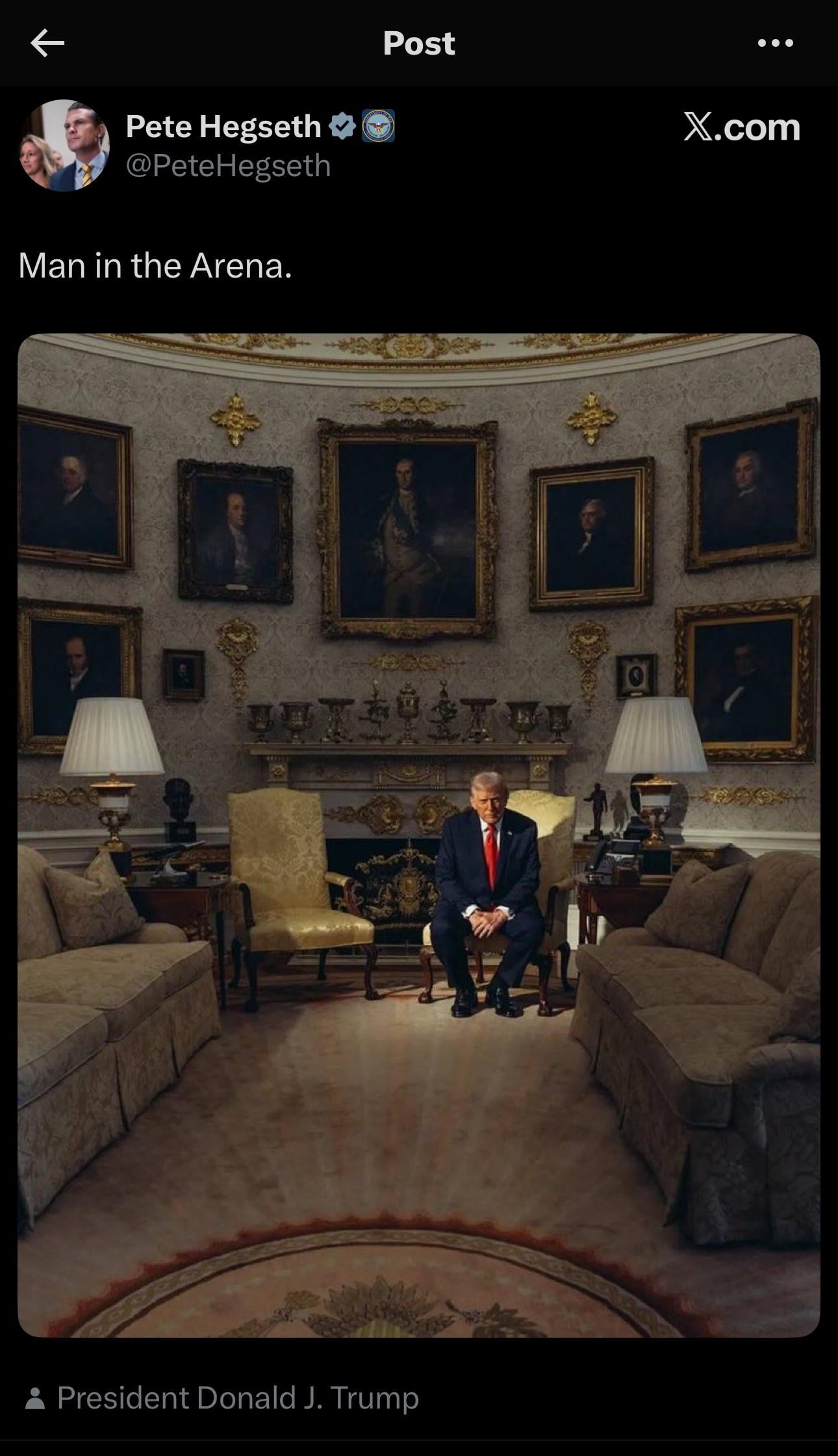 Why does the POTUS need SECDEF, sorry, SECWAR to take a picture of him in a semi-dark room and title it with an affirmation to make us believe he’s fighting someone?