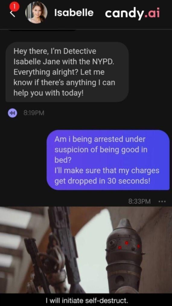 BreezyBubbley on October 25, 2025 11:50 am When your flirt game goes from smooth criminal to actual police report in under a minute.