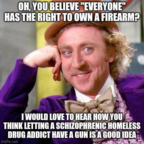 Straw man arguments aren’t going to help anyone. “Everyone” isn’t an absolute. There are already exceptions for felons and people who pose a clear danger to themselves and others.