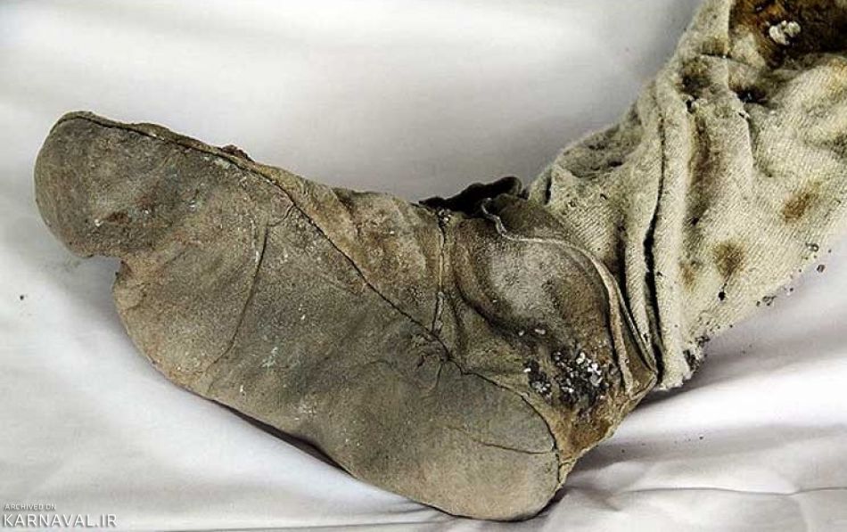 In the winter of 1993, miners came across a body with long hair, a beard and some artifacts, in the Chehrabad salt mines, located on the southern part of the Hamzehlu village, on the west side of the city of Zanjan, in the Zanjan Province, Iran. These included the remains of a body, a lower leg inside a leather boot, three iron knives, a woollen half trouser, a silver needle, a sling, parts of a leather rope, a grindstone, a walnut, some pottery shards, some patterned textile fragments, and a few broken bones. The body had been buried in the middle of a tunnel approximately 45 metres (148 ft) in length.