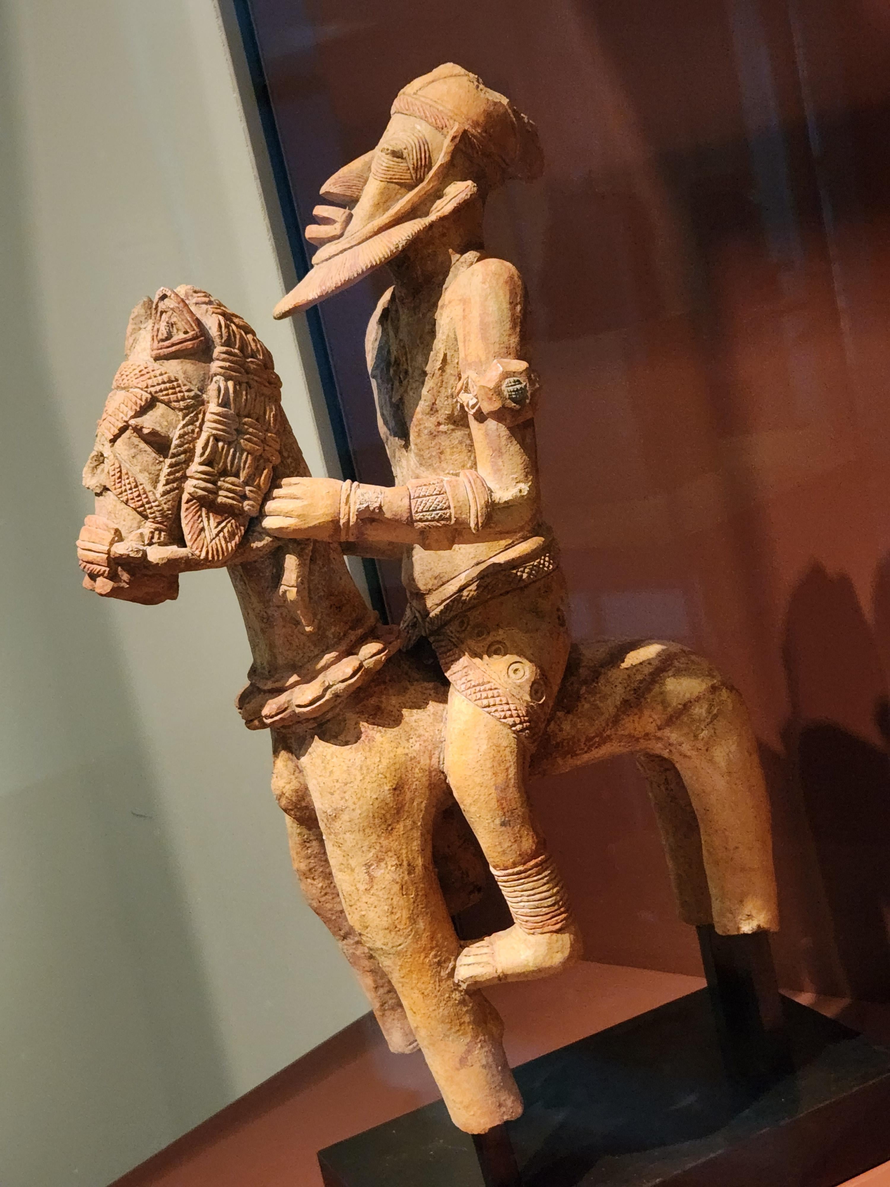 The woven horse’s bridle is amazing in its specificity and execution, and must be a treat for those studying historic West African textiles for weaving / knotting patterns.