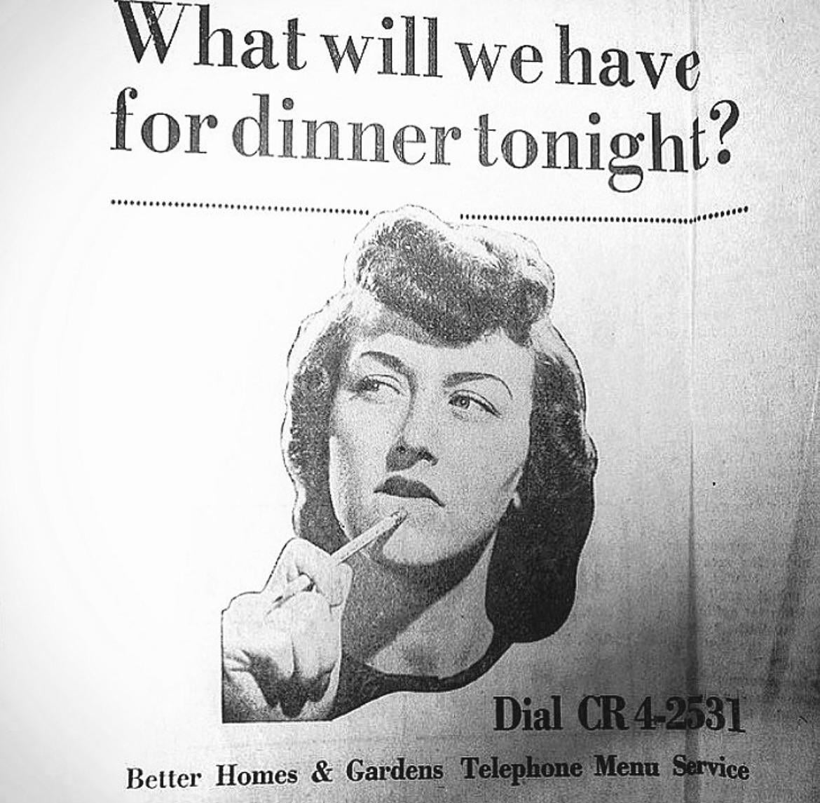 Did some research and apparently Better Homes & Gardens experimented with this telephone recipe hotline during the 1950s, especially around 1953–1958, before it evolved into radio and TV promotions.