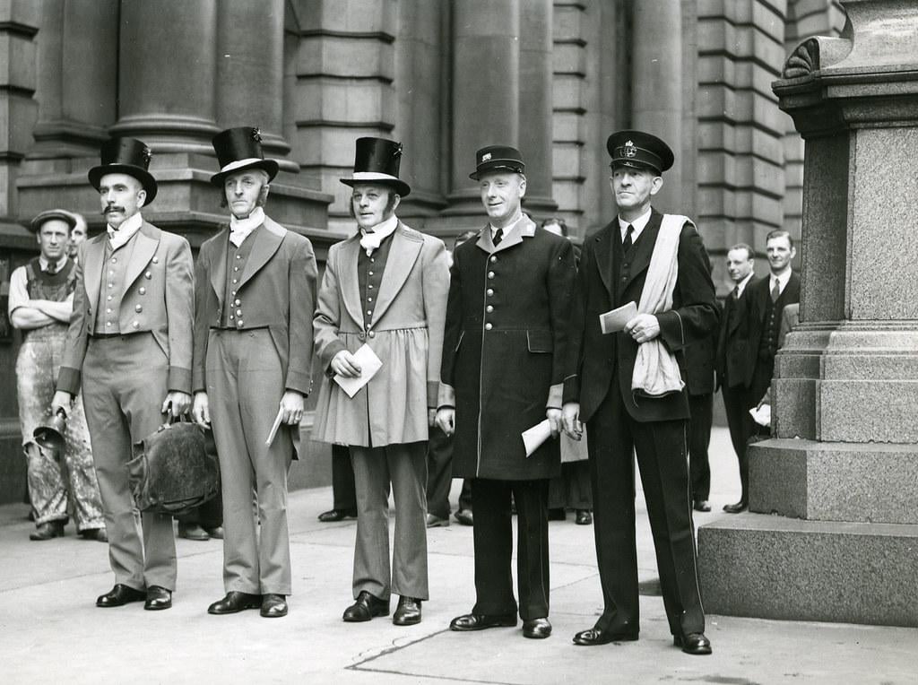 The evolution of British postal uniforms, from 1840 (left) to 1940 (right) [1024 x 764] by JorisBohnson2014