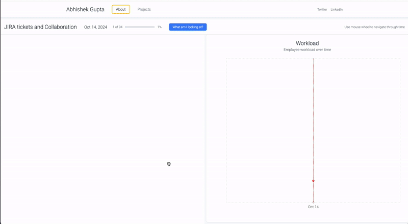 You can scroll through time to see how the team's workload and dependencies evolved day by day.