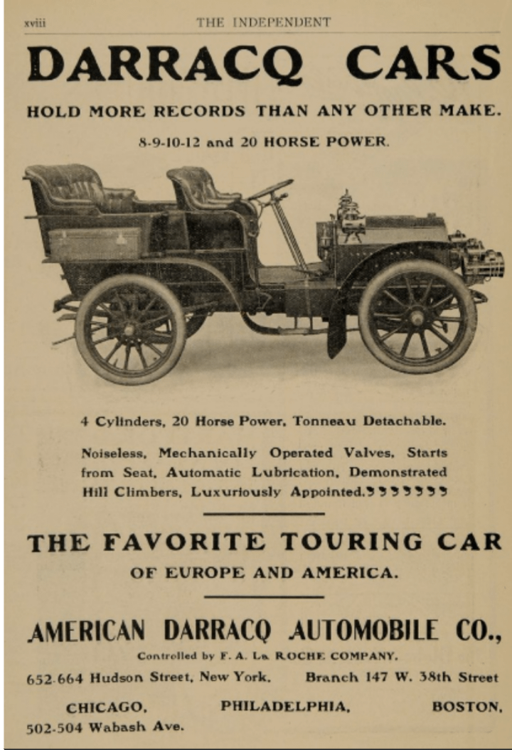 A 1903 American Darracq Automobile Co. Advert.