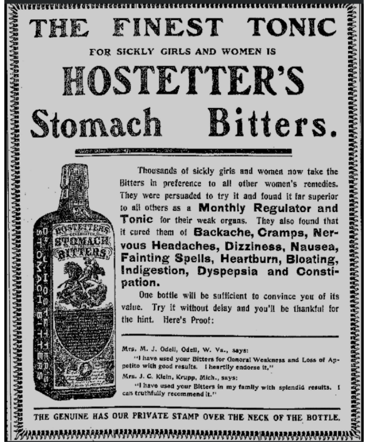 A 1905 Dr. Hostetter’s Stomach Bitters Advert.