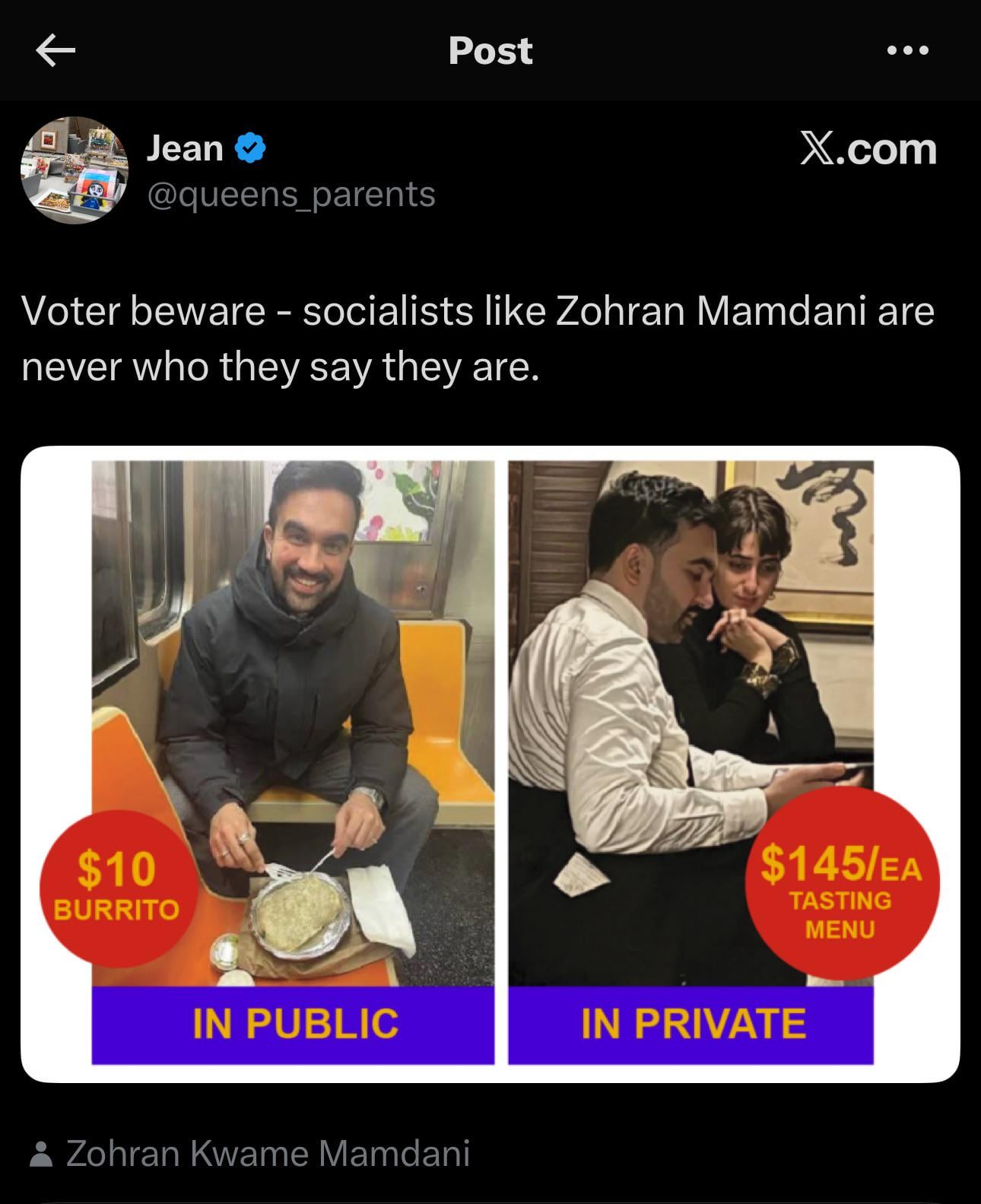 If I remember correctly, the picture on the right is when Zohran visited a modestly priced sushi restaurant in NYC and the social media poster was roasted for his lack of knowledge.