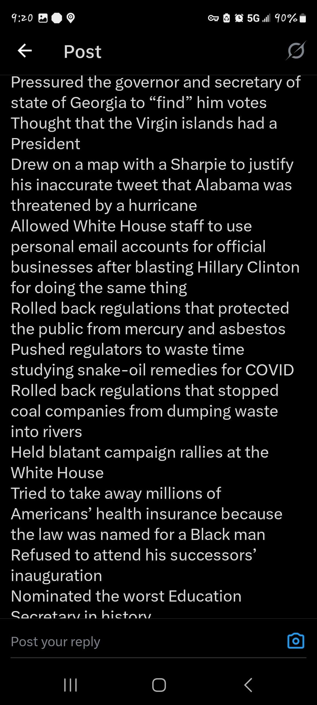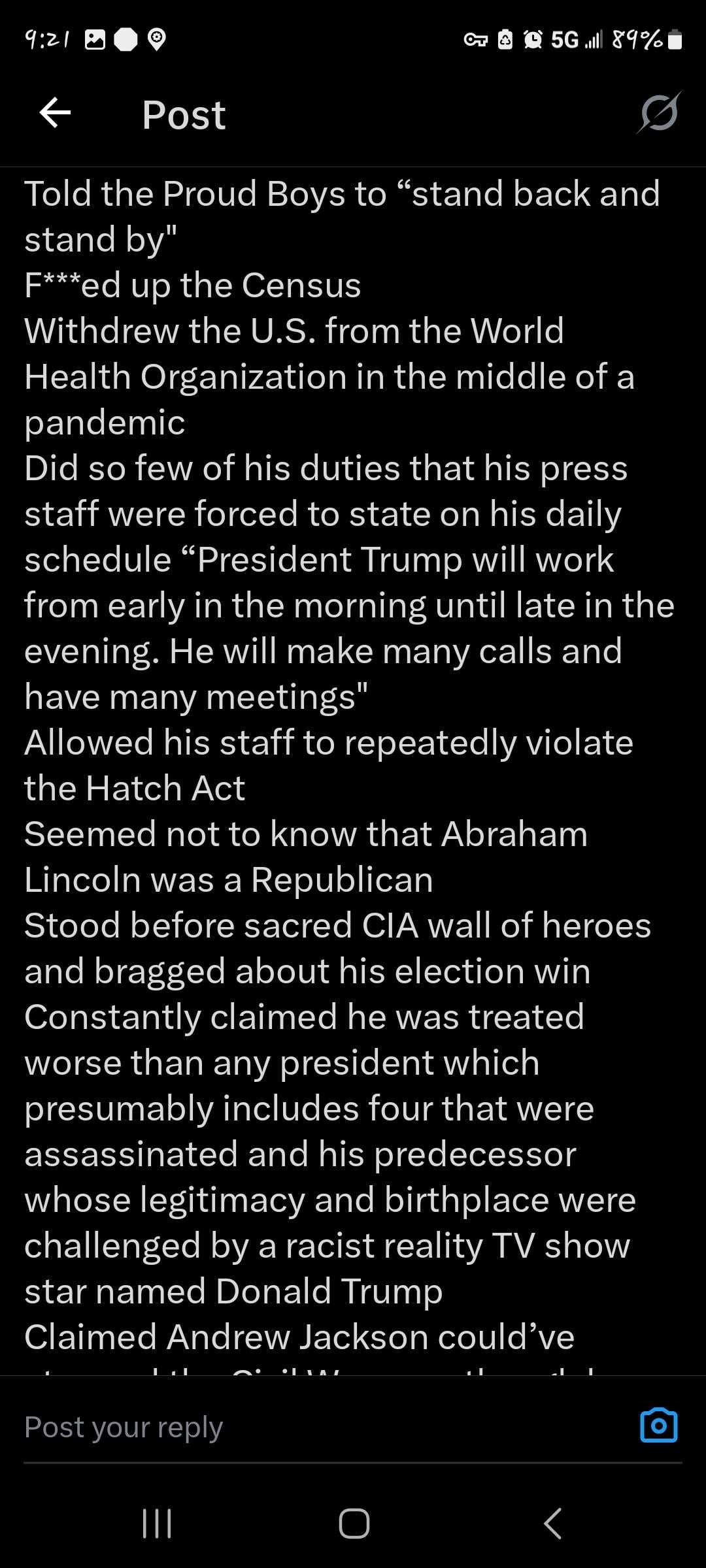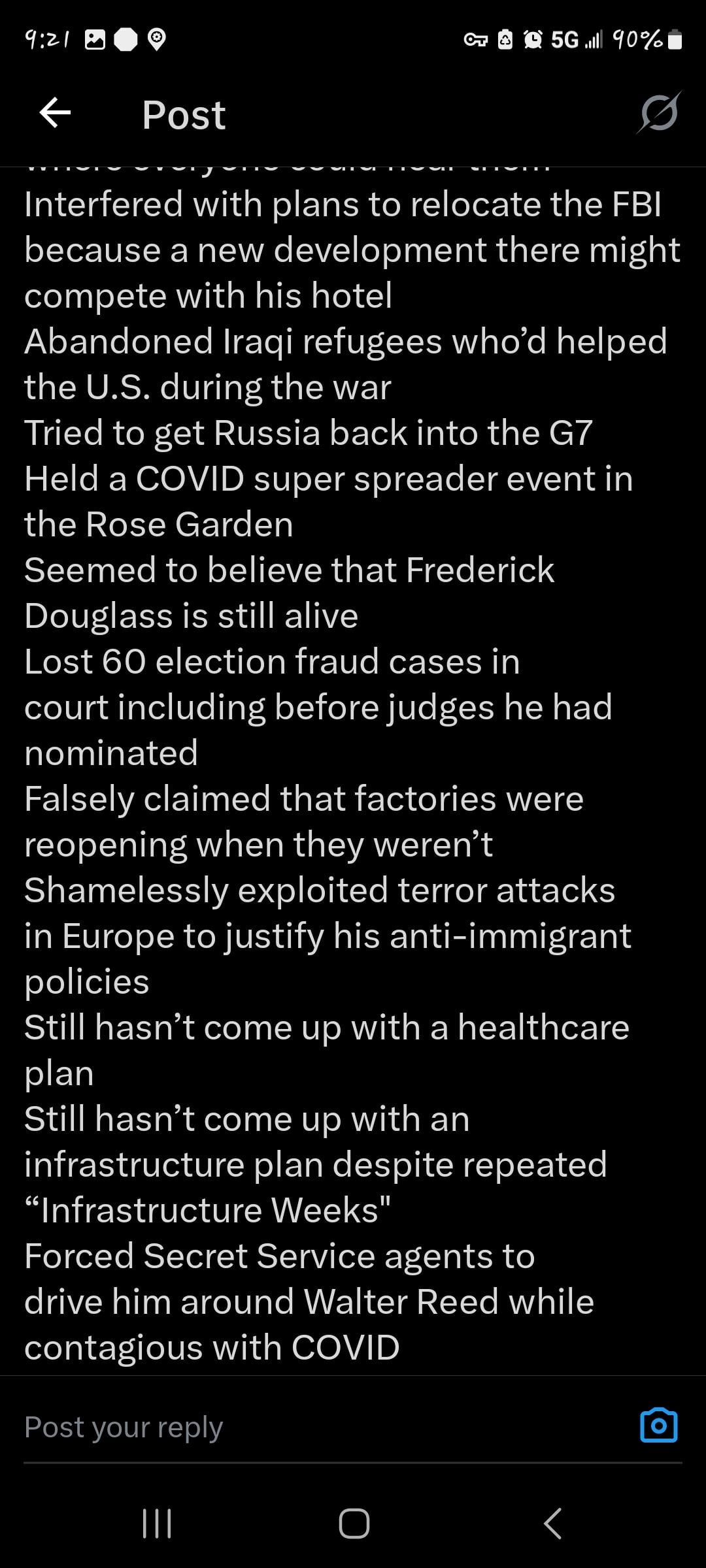 OkapiEli on October 26, 2025 5:02 pm Unless I missed it (and there was a lot there to wade through, pretty mucky), you left out how he tore down half the White House.