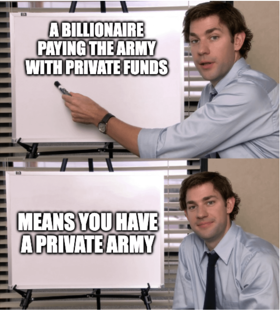 Given someone said before that theres about 1.3 million members of the military they all get $130 each. They’re really making bank in this private army