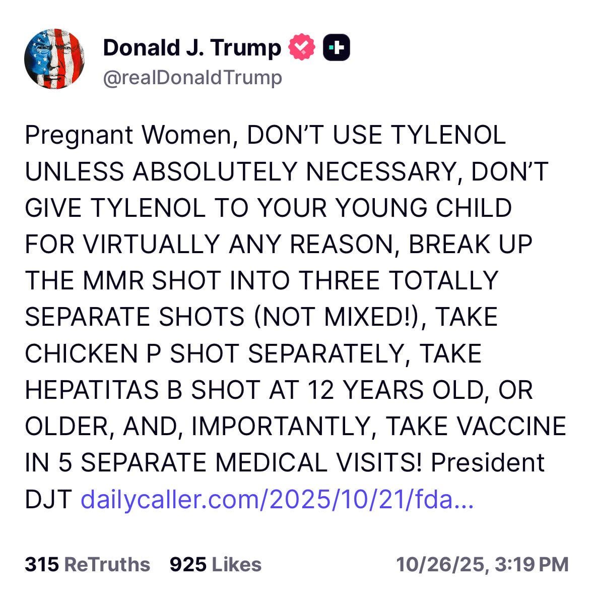 We give Tylenol in the NICU to close holes in the heart (patent ductus arteriosis) and also for pain. We are already seeing pushback from parents as well as their fear because of the false information this regime is spreading. I also fear we will begin to see the consequences of women with untreated fevers in their pregnancies. Listen to doctors people.