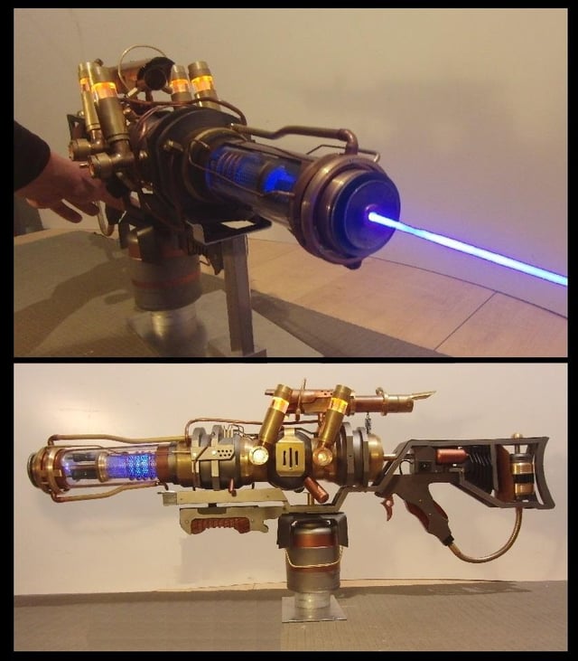 A while ago I made a fallout rifle, but I wanted it to look like an ancient prototype. And its not THE fallout plasmarifle, it was based on a concept art. Added a working laser (as usual) and a lot of light. Let me know what you guys think!