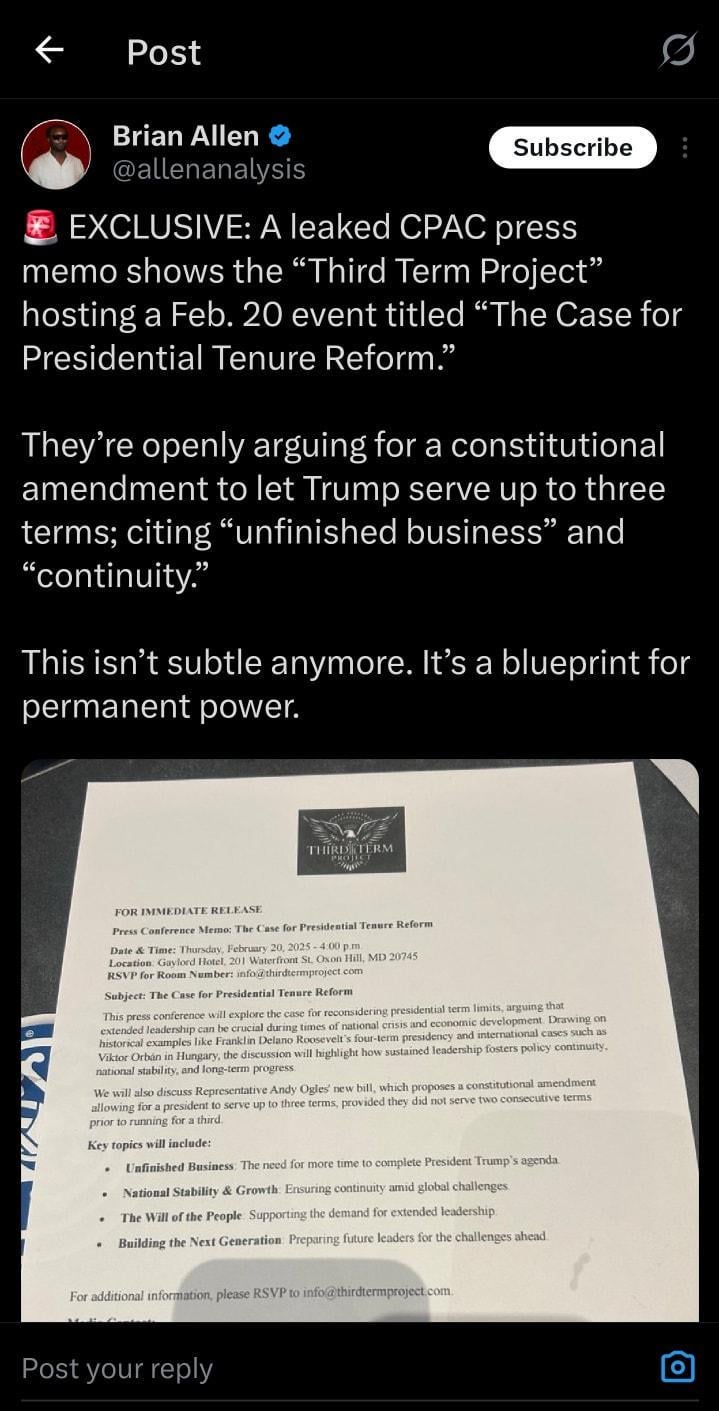 Practically speaking, the move here needs to be at the state level to legislate the 22nd Amendment to prohibit anyone appearing on the ballot for president who has already served 10 years or two terms. SCOTUS may fold & say he can run, but it’s tough to get votes if your name isn’t on the ballot.
