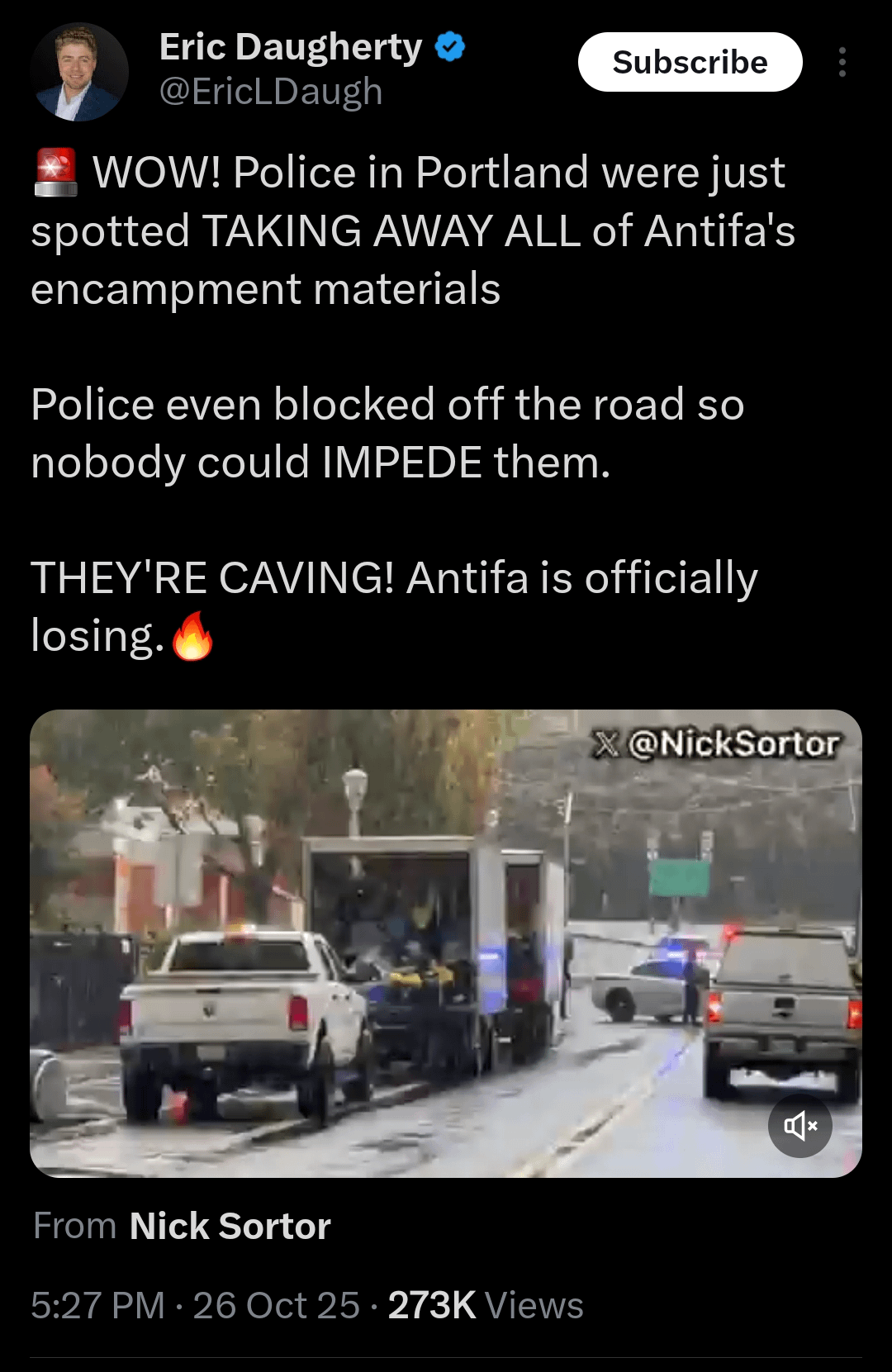 So, the homeless are Antifa now? They needed the national guard to clear a homeless encampment.