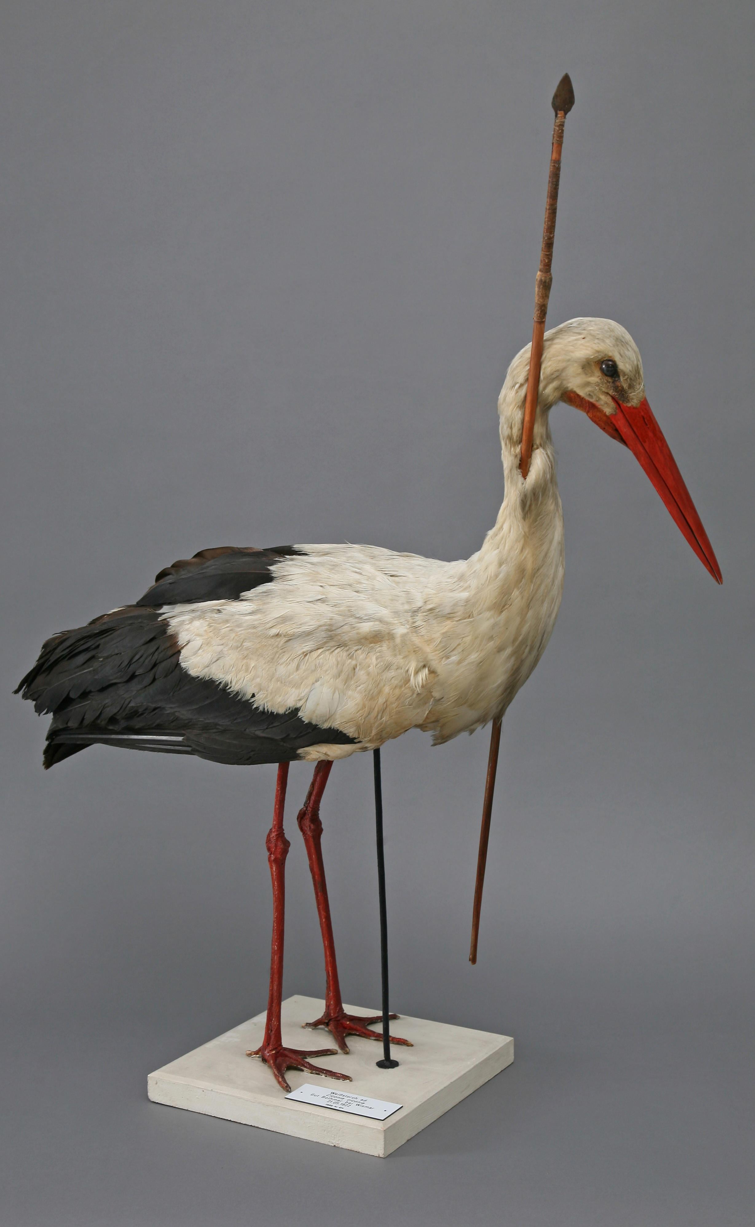 In 1822, a white stork found in Germany with a 75 cm spear from central Africa stucked to its neck, demonstrated that birds migrated rather than hibernating or changing form in winter. The specimen was subsequently stuffed and is now housed at the Zoological Collection Rostock [2457×3994]