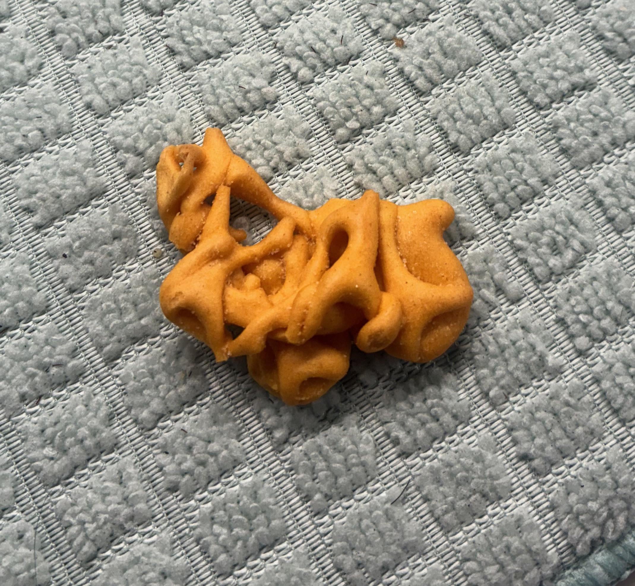 1. Looks like the surrounding part of the dough they punch the fish shape out of still attached and baked to fish