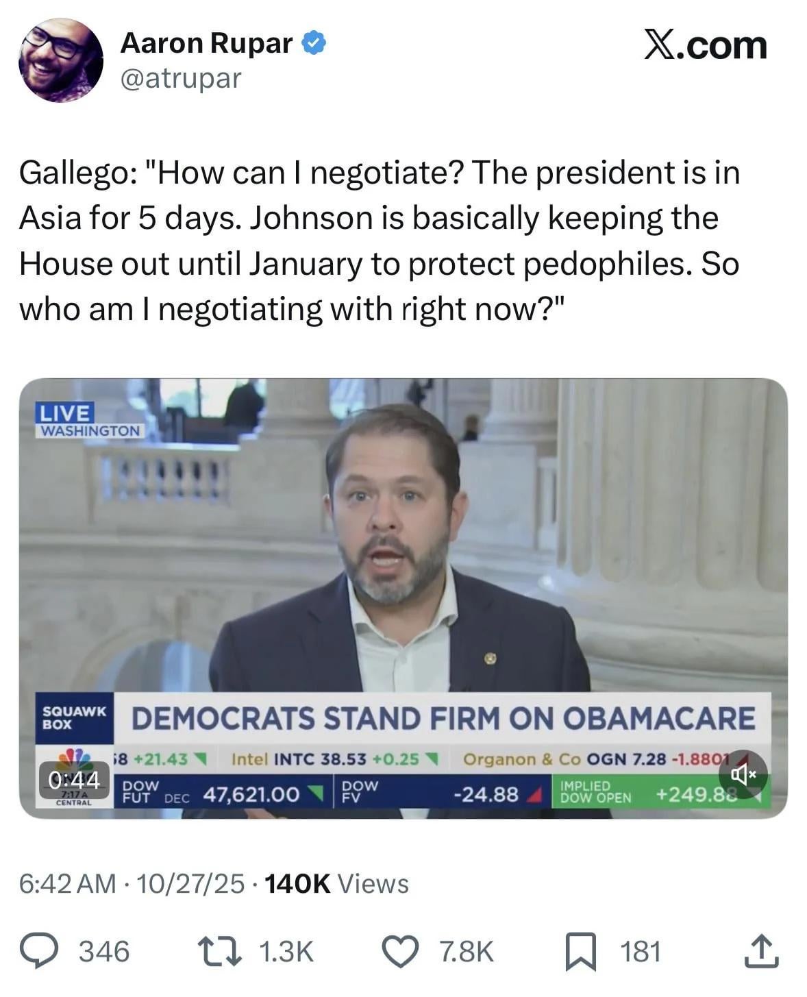 Remember, Johnson had the House shut down for almost 2 years when he first took leadership. It’s the reason why committees were a circus talking about UFO ‘s instead of anything that impacted the day to day life of people. The reason Biden didn’t get much done was because Johnson wouldn’t bring any democratic policy to the floor. So we need to remember that Johnson is experienced in shutting down the government so we need to treat him as a more educated threat in this situation