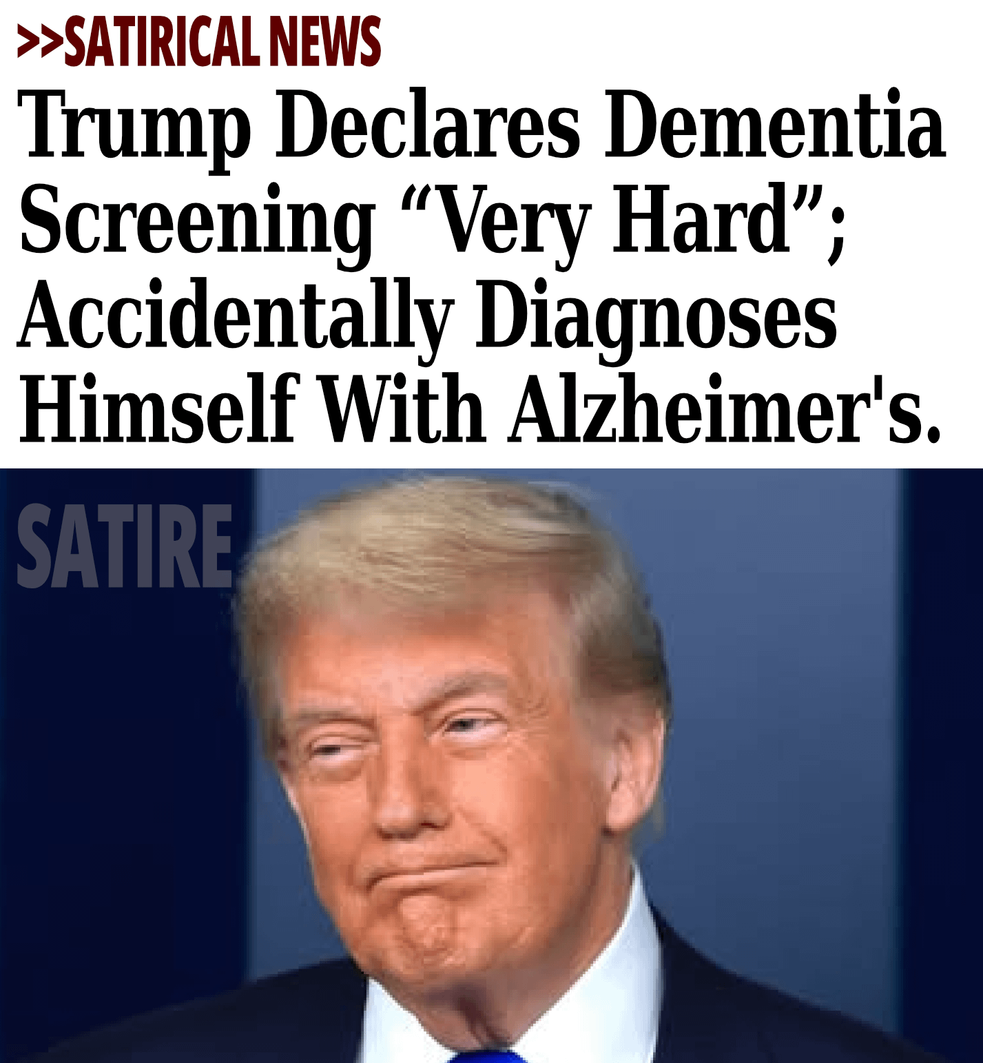 Donald Trump declares dementia screening very hard accidentally diagnoses himself alzheimer’s satirical