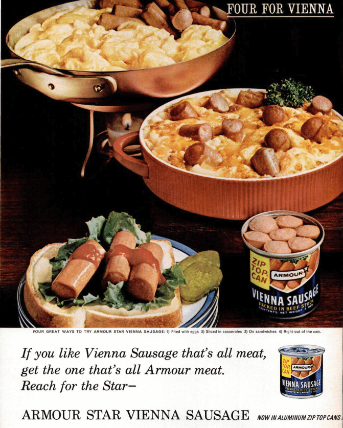 Vienna sausage sandwiches were a thing when I was a kid growing up, as were fried bologna sandwiches and fried Spam sandwiches. Haven’t had any of those in many decades.