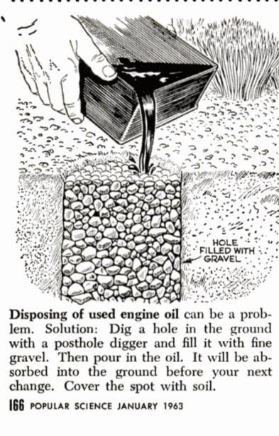 My 61M dad used to pour the used oil around the garage foundation to keep weeds from growing there. It worked but I bet that ground is still contaminated 50yrs later.