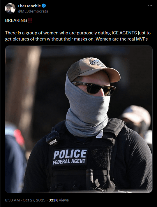 AusCan531 on October 28, 2025 8:10 am This is brilliant. Even if it’s not true, it’ll make ICE agents that much more wary.