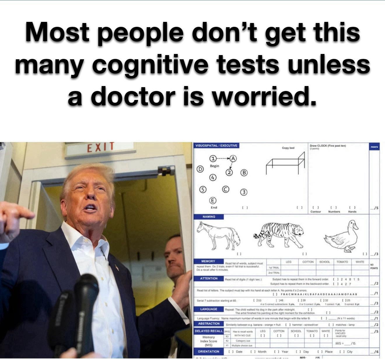 He fails the cognitive test every day when he opens his mouth and speaks.