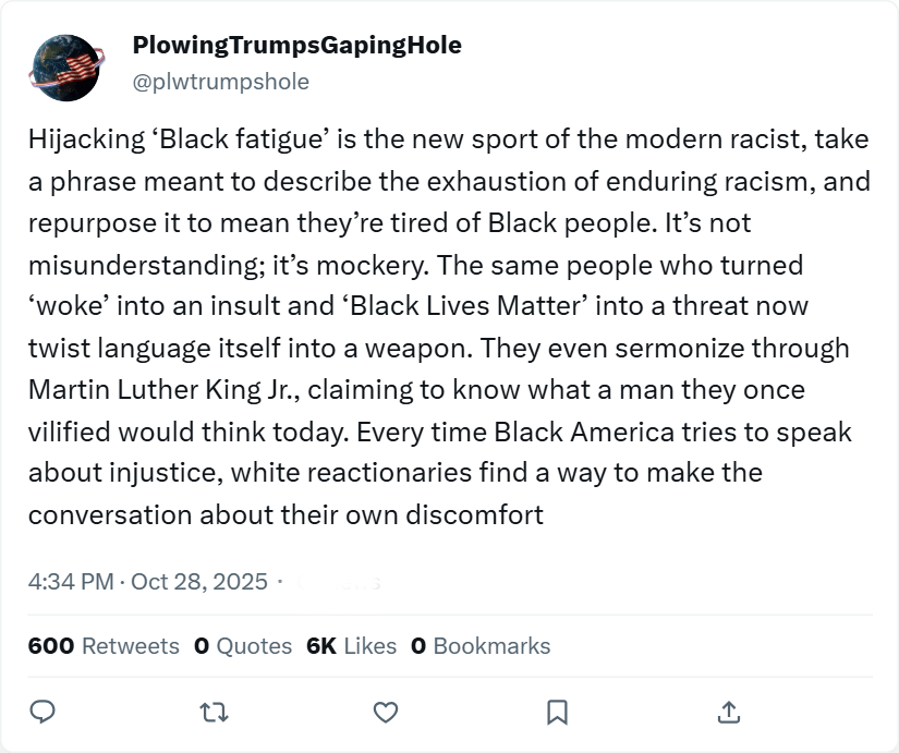 They knew what they were doing with that and we knew. It just took them a little while to catch up to the term. I see it all the time on TikTok now especially on black creators talking about black issues specifically.