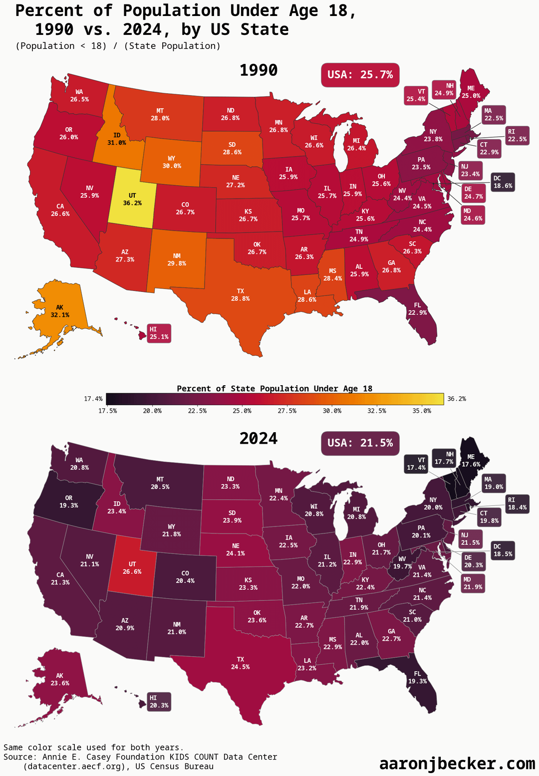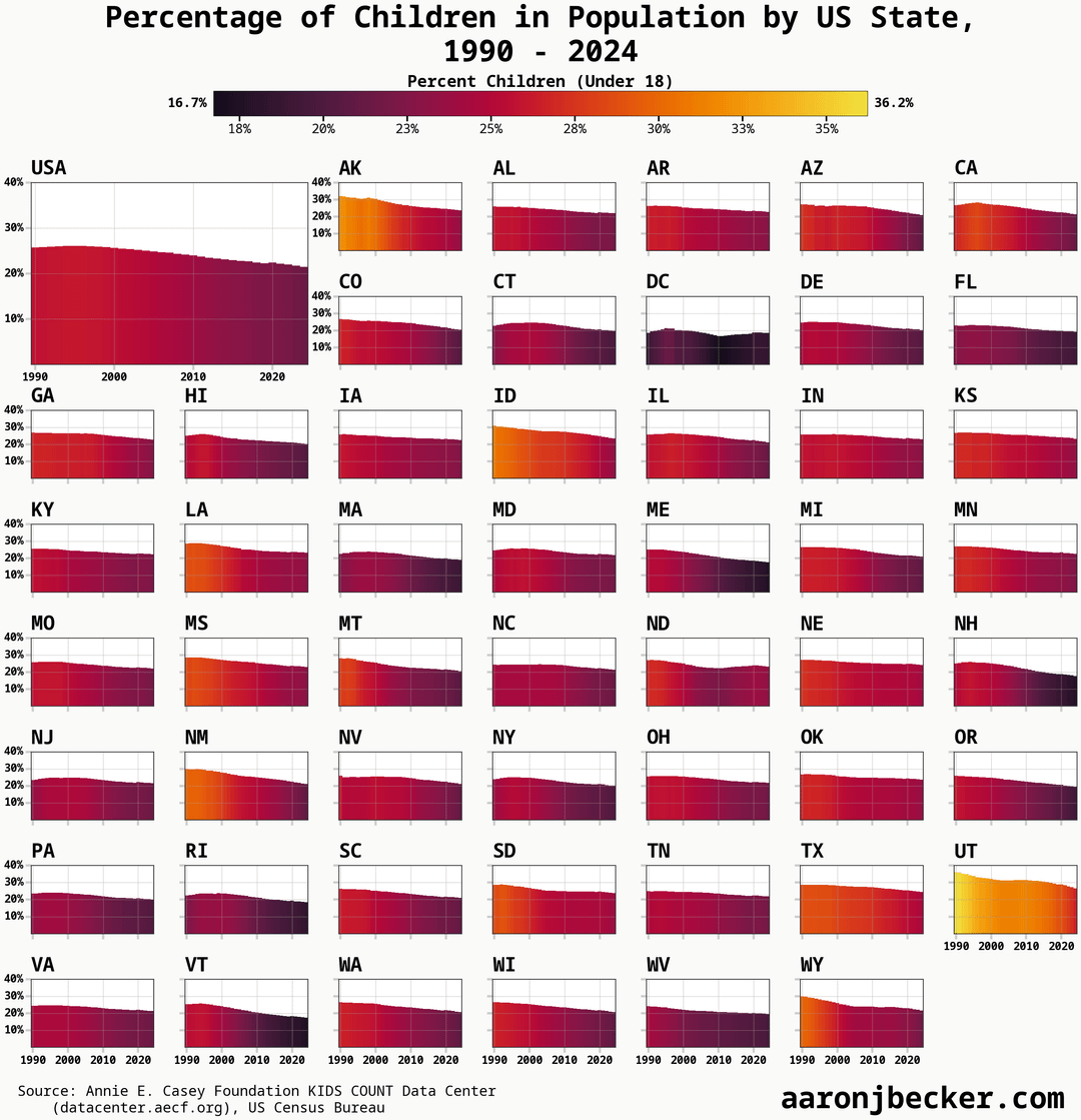 [Blog post with full replication code, walkthrough, and analysis](https://aaronjbecker.com/posts/comparing-child-share-population-1990-vs-2024-by-state/)
