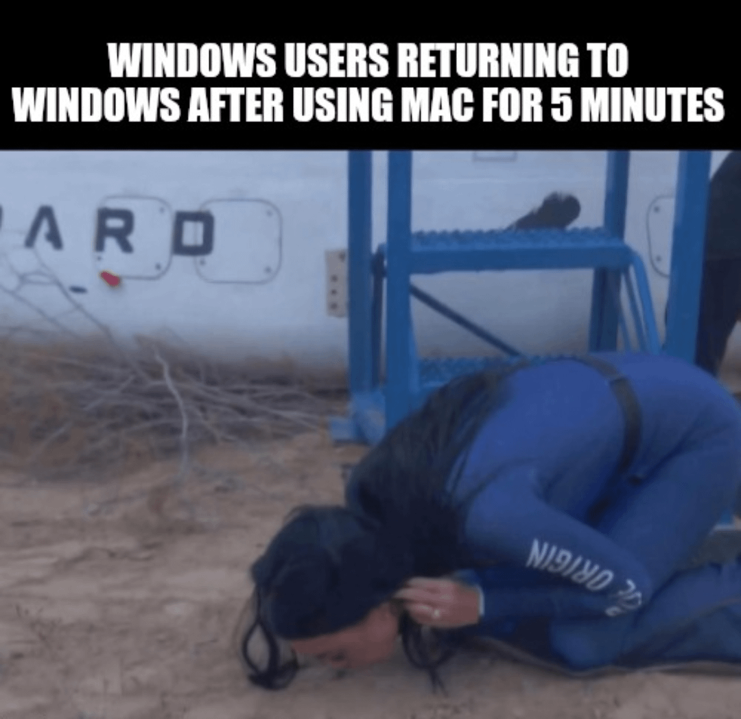 MacOS / linux / literally any OS users coming back to their usual OS after using windows for half a planck time