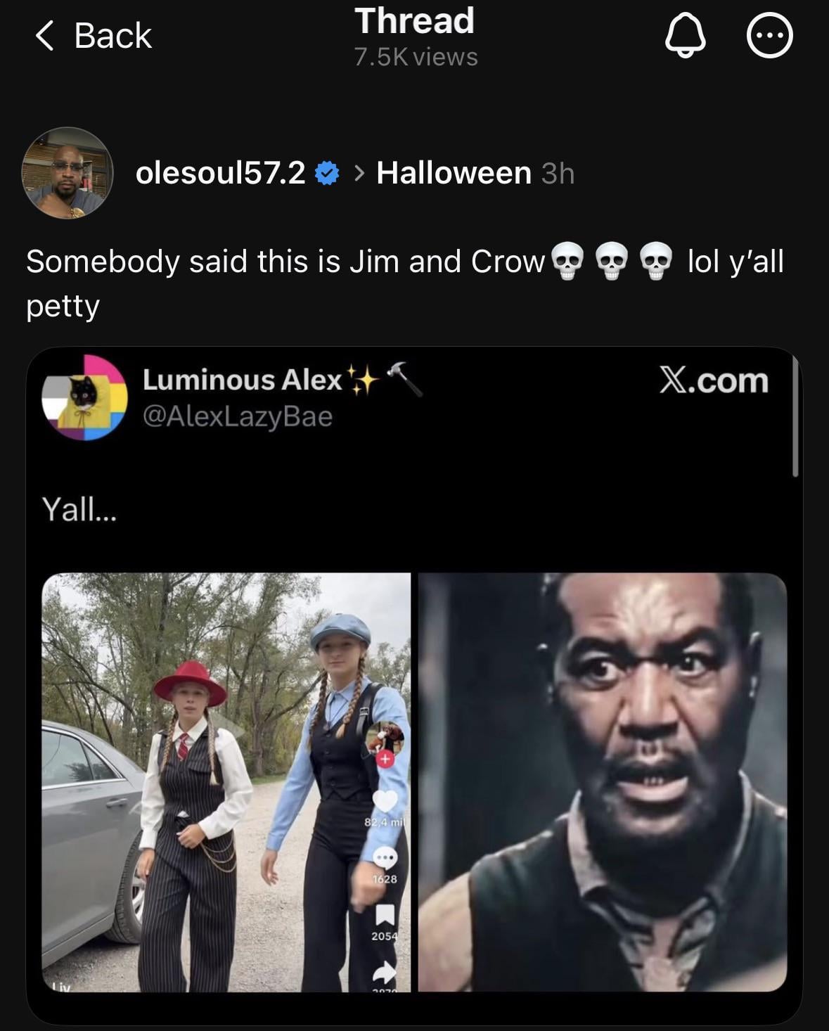 TheBlackCaesar on October 29, 2025 4:56 pm Jim and Crow is still a great joke LOL And yeah they can rock it hence no black face
