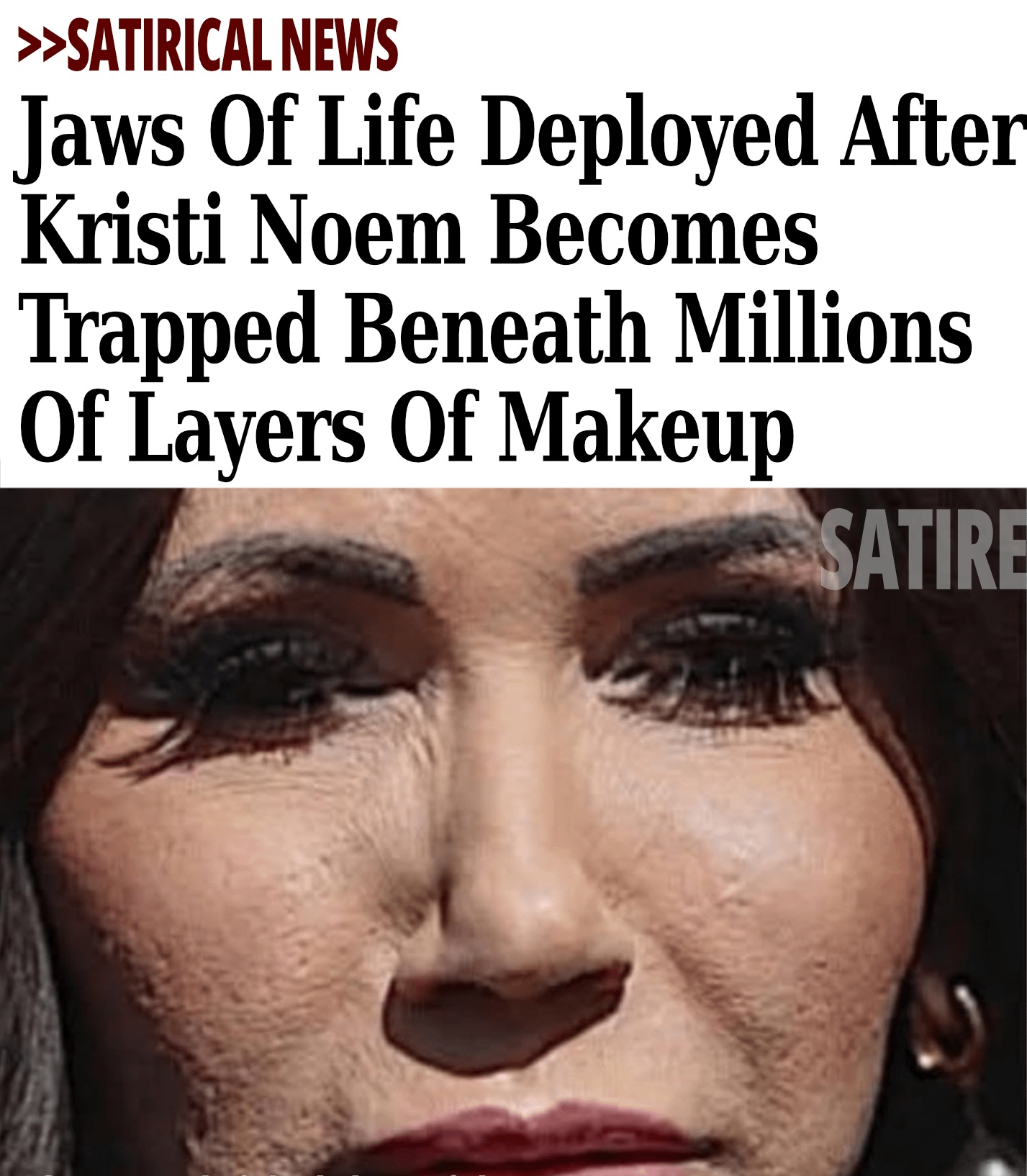 Jaws of Life Deployed Krisi Noem Become Trapped Beneath Millions of Layers Makeup Satire