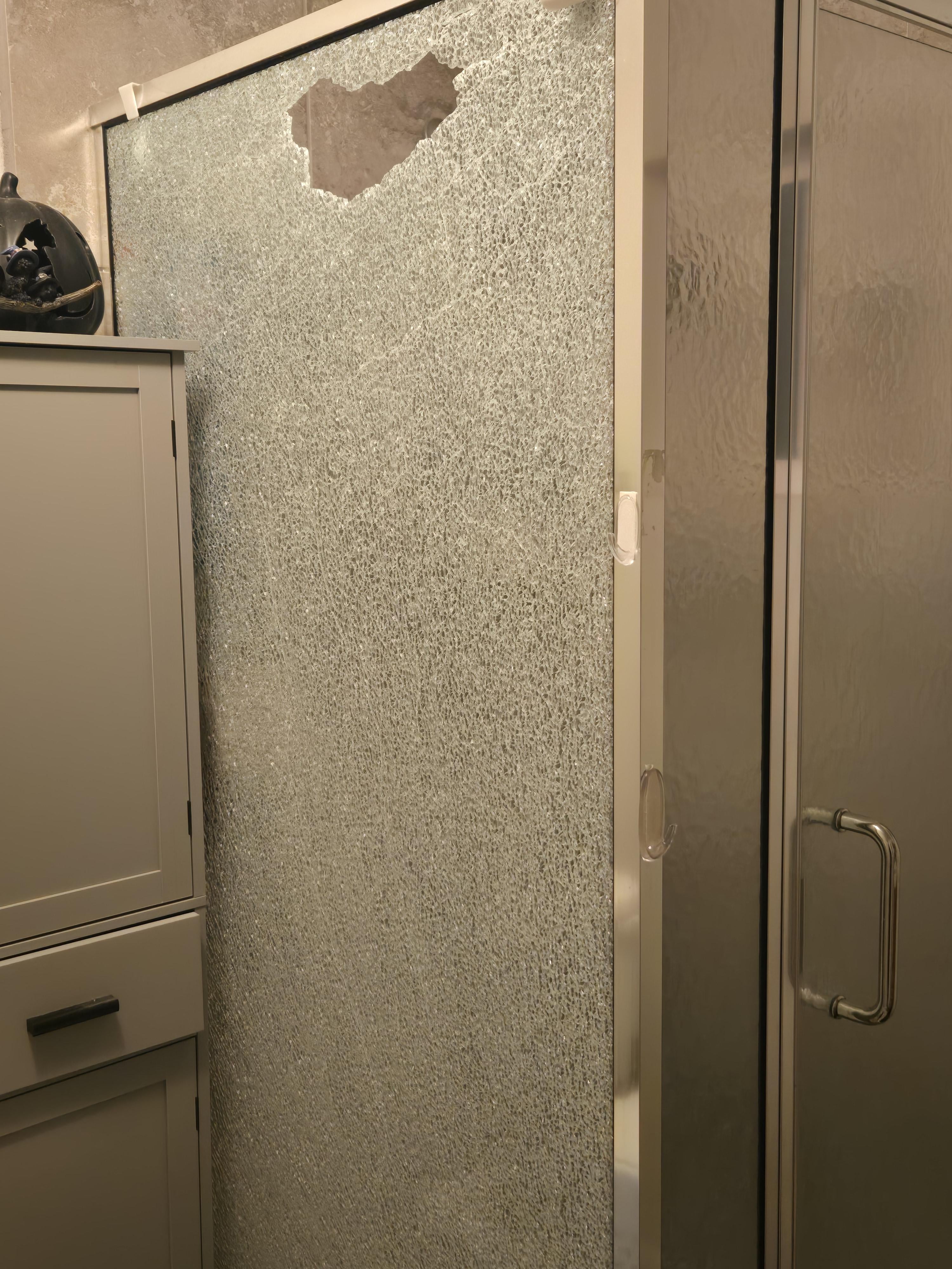 I sell shower cabins for a living and I can tell you it can happen. Tempered is very fragile at the corners and you just need a small shock in those weak spots to shatter it. If a hinge gets loose and the door collapses, it explodes. If the house walls “moves” (due to normal ground movements or earthquakes) it can compress the glass too much and it explodes. If the glass contains impurities such as nickel sukfide (glass cancer) it can lead to internal cracks overtime and explodes on its own.