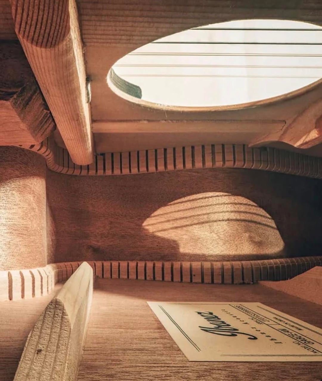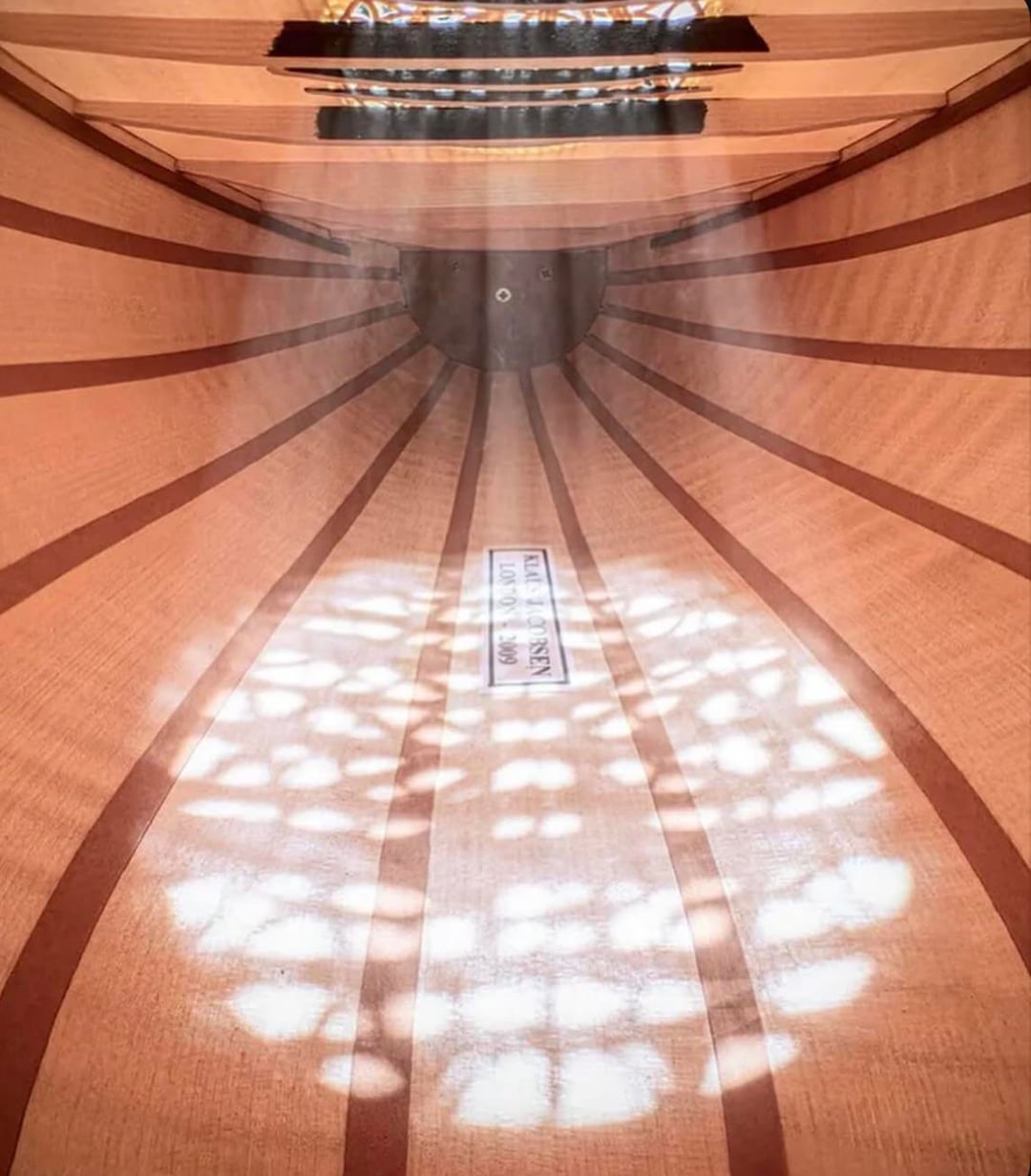 That guitar interior would be amazing for a room design. Imagine some musician who was designing a home and making the living room in the shape of the inside of a guitar