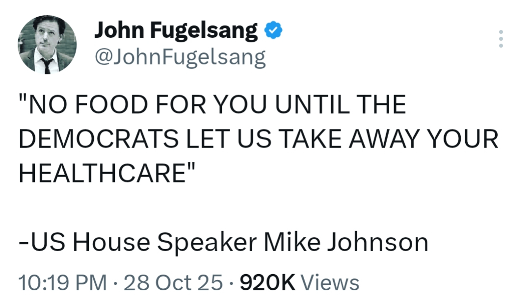 You cannot have food AND healthcare, but you can absolutely have neither… Mike Johnson.