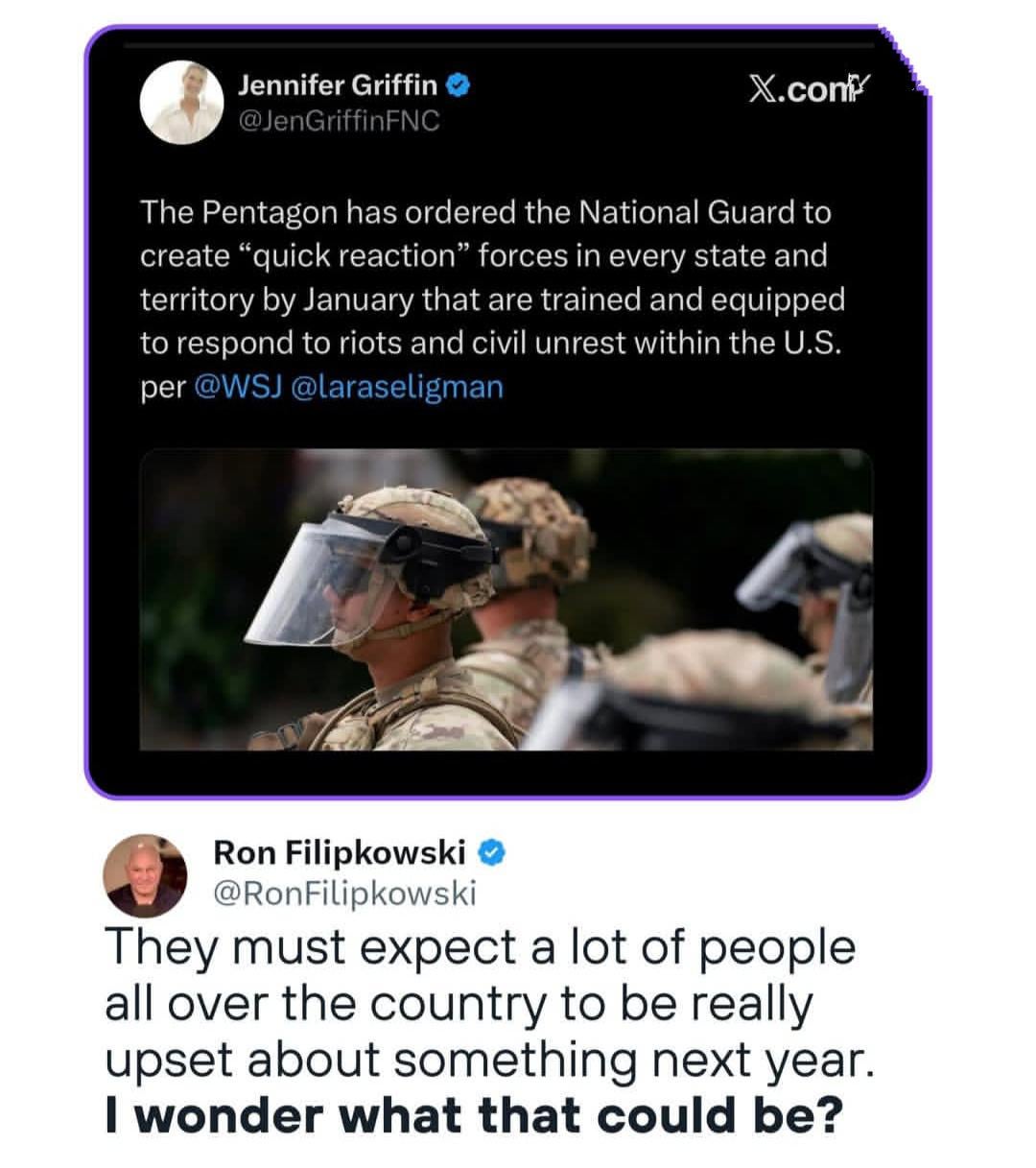 At this rate we’re going to need the National Guard to protect us from the National Guard.