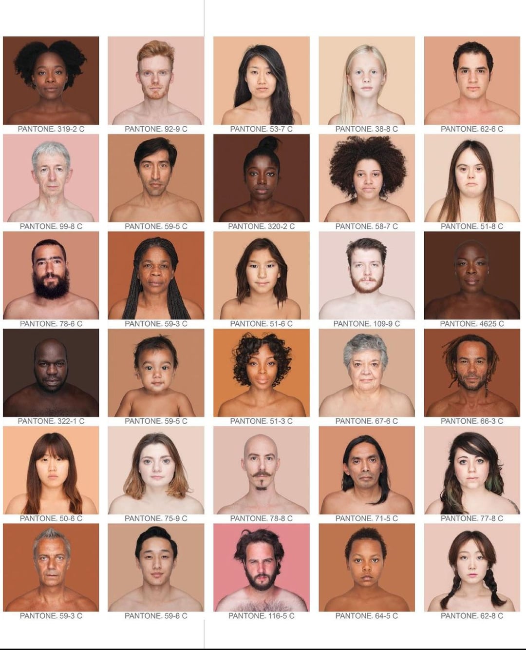 SS: This is part of “Humanæ” by artist Angélica Dass. She photographed thousands of people from around the world and matched their skin tones to Pantone colors to highlight the full human spectrum and show how artificial racial color categories are.