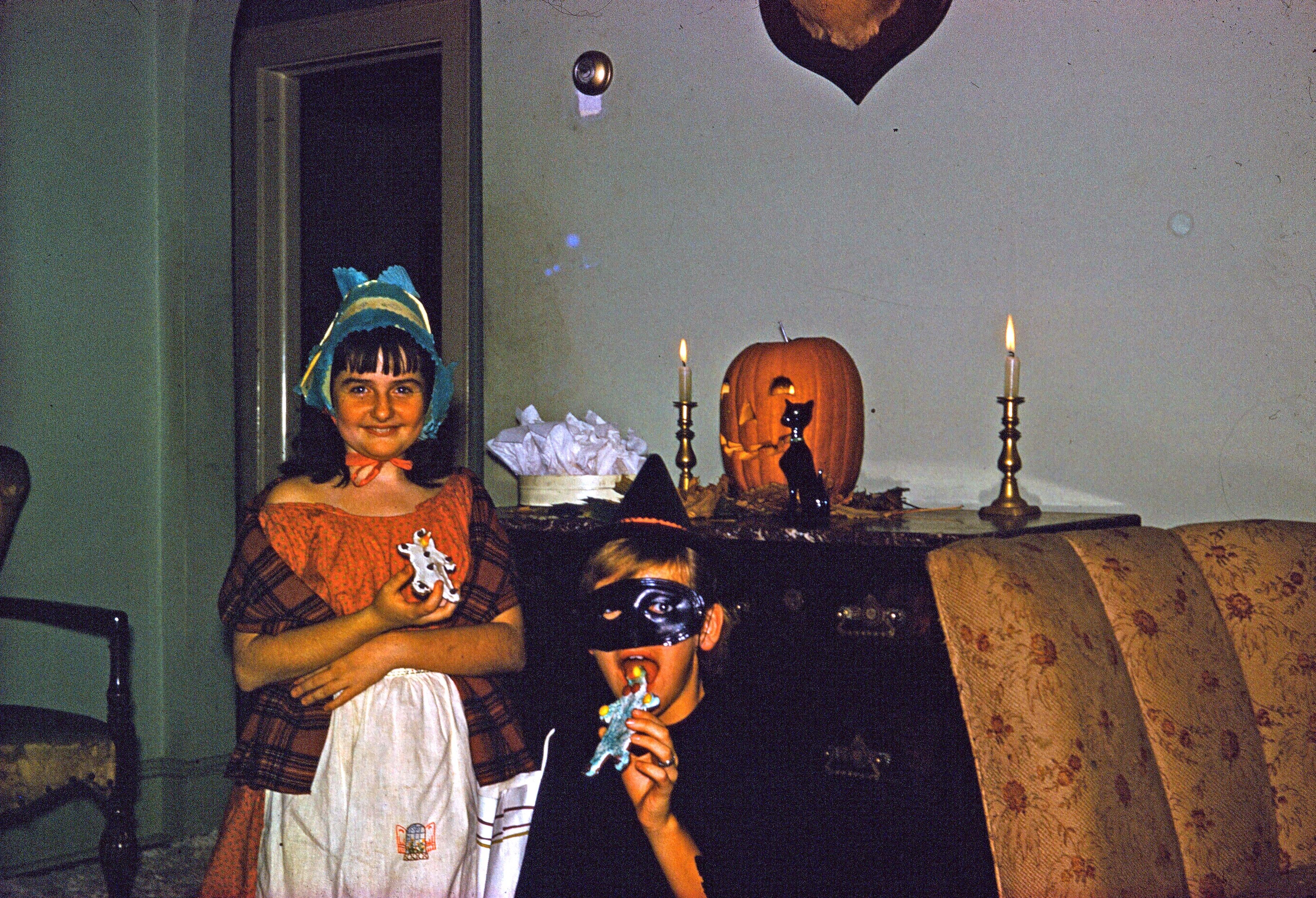 My mom and a neighbor on Halloween in New Jersey circa 1957. She still has that ceramic cat on the table after all those years. by mackzegreat