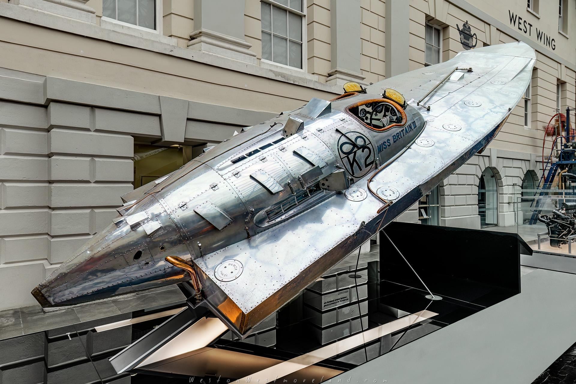 Miss Britain III, a racing power boat designed and built in 1933, was the first boat to pass 100mph (161km/h) in salt water. Her hull was made of alclad aluminum sheet over an aluminum and wooden frame. She was powered by a single 1,350 hp (1,010 kW) Napier Lion VIID engine [1920×1280] [OC]
