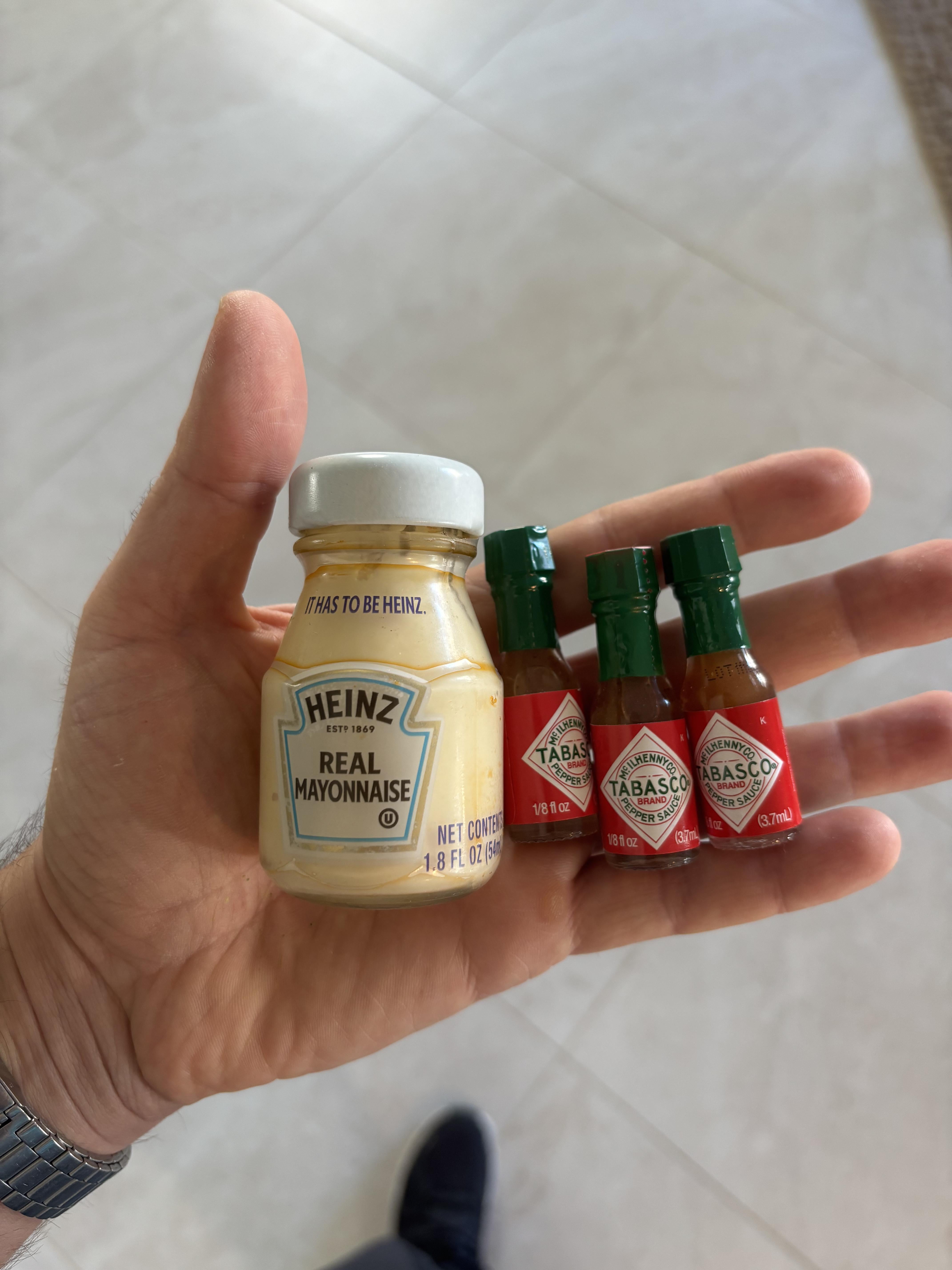 Tiny mayo and hot sauce are so cute. I am going to look online for them now