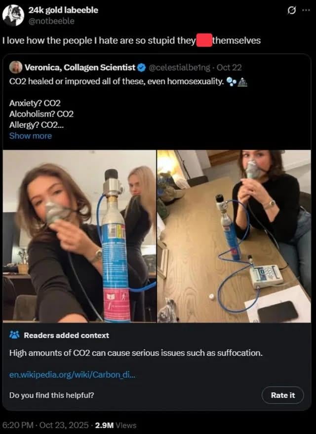 She isn’t kidding. Breath CO2 long enough and it will even cure you from life itself.