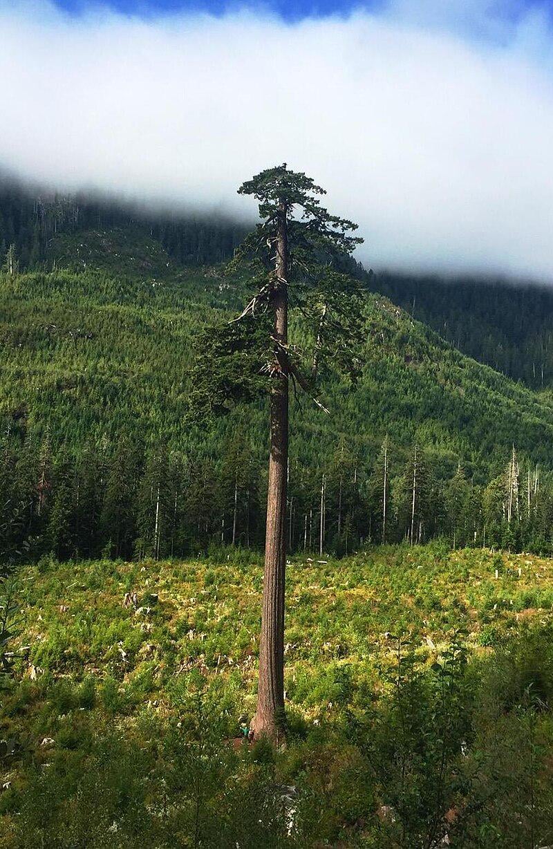 Big Lonely Doug, one of the largest douglas fir trees in the world. It was discovered in 2011 by a logger who prevented it from being cut down, and was rediscovered by a photographer in 2014. It now stands “alone” among a field of clearcut trees.