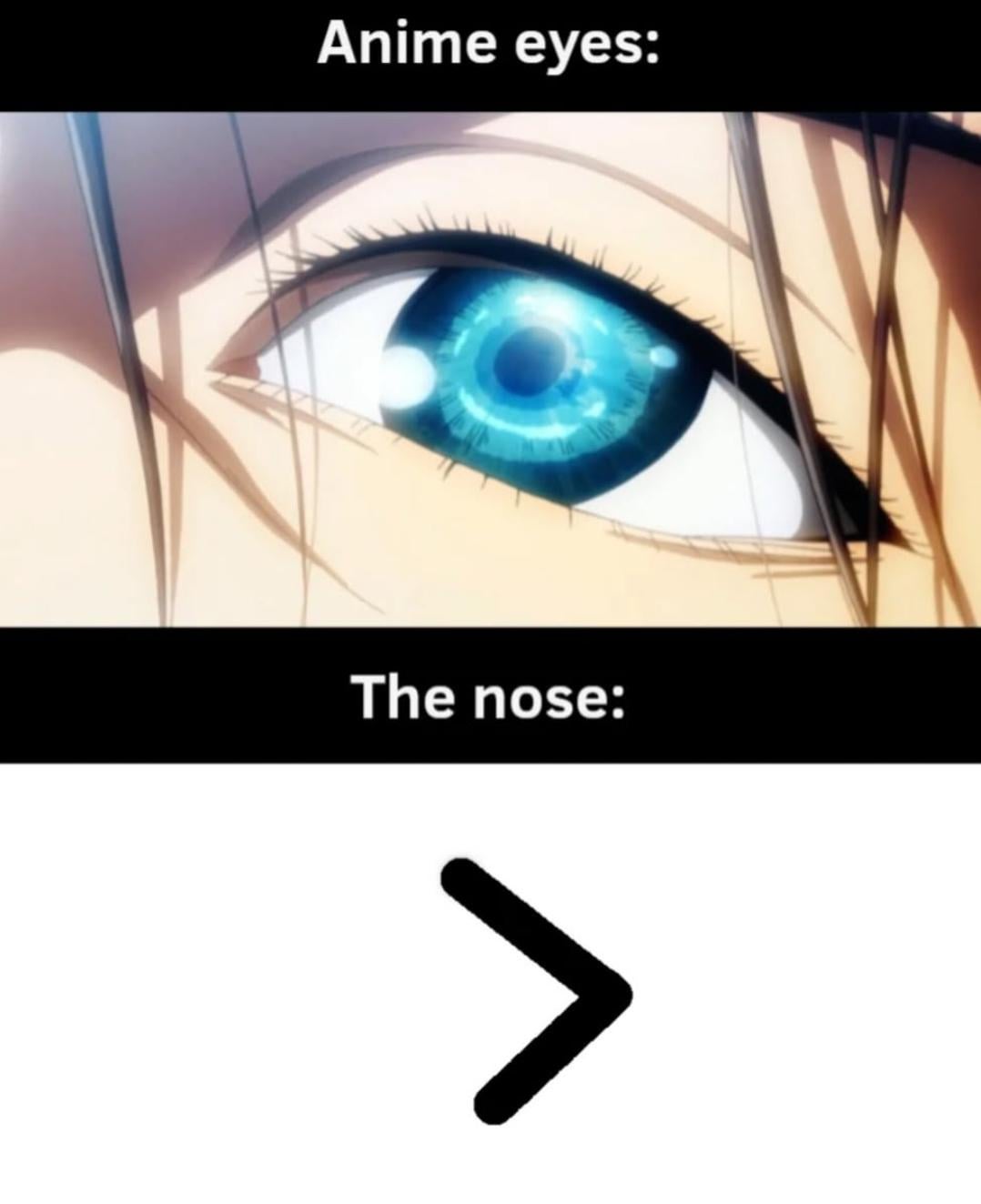 Its the way that anime meddles between 2d and 3d that the noses are like that BUT most animes have normal 👀