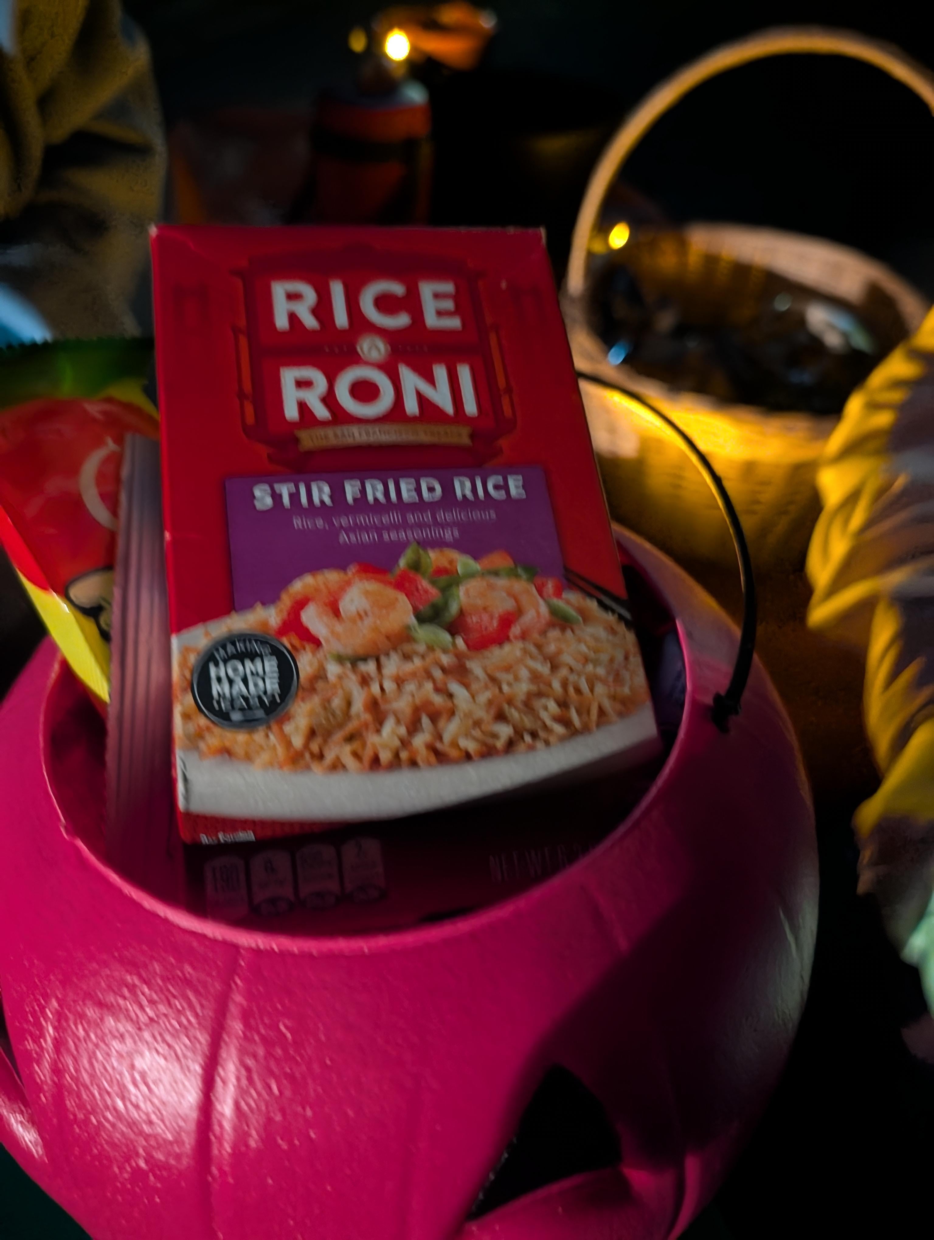 I did this too. Did more kid friendly dishes than rice a Roni we had SpongeBob easy Mac, and chef boyardee but also gave candy too. Did it cause of snap issue