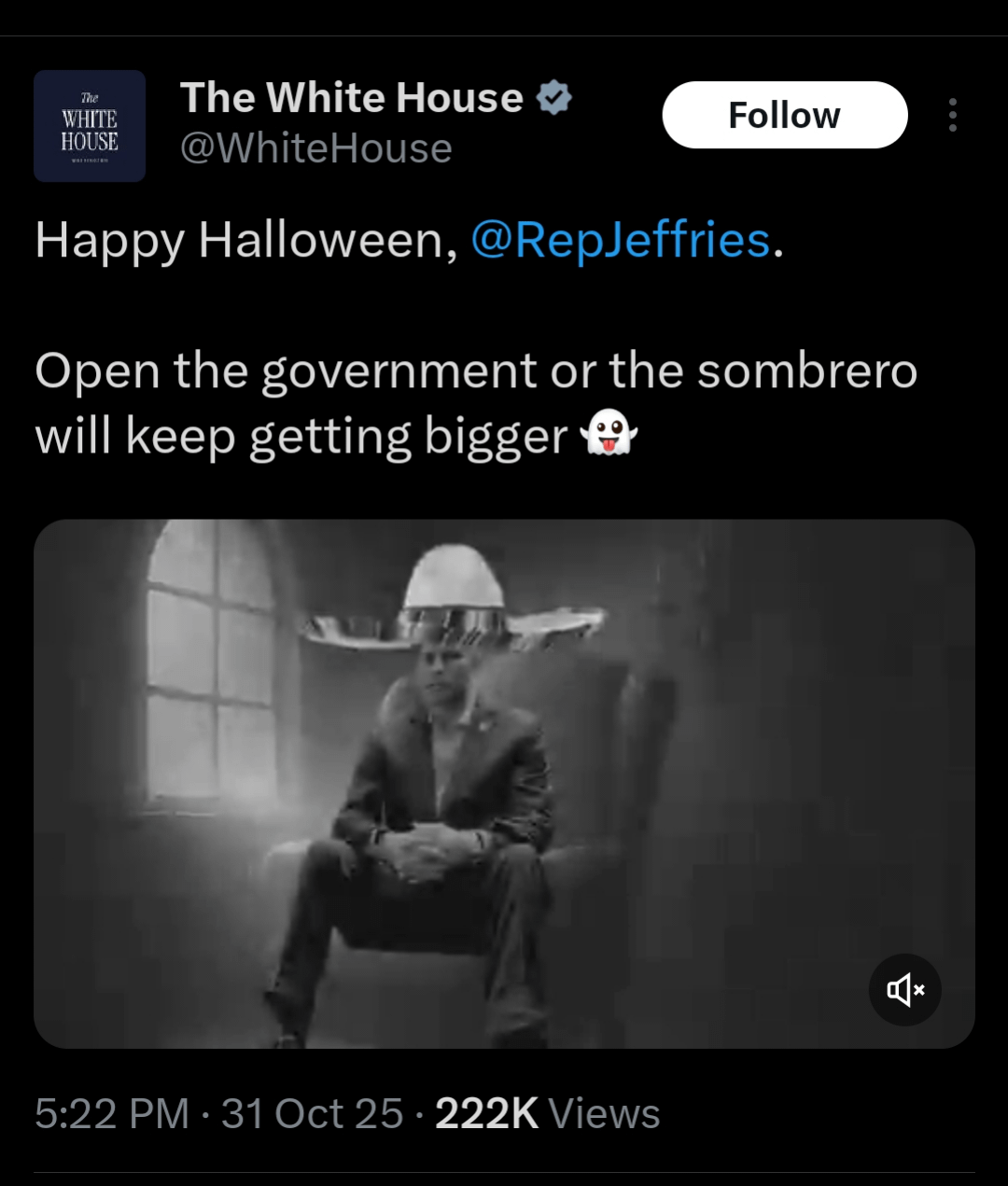 Honestly if I were Jeffries at this point, I’d show up at the next public event with the largest sombrero I could find and then publicly call out the republicans on their hypocrisy/racism. Take away the bully’s power and then push it down their throat