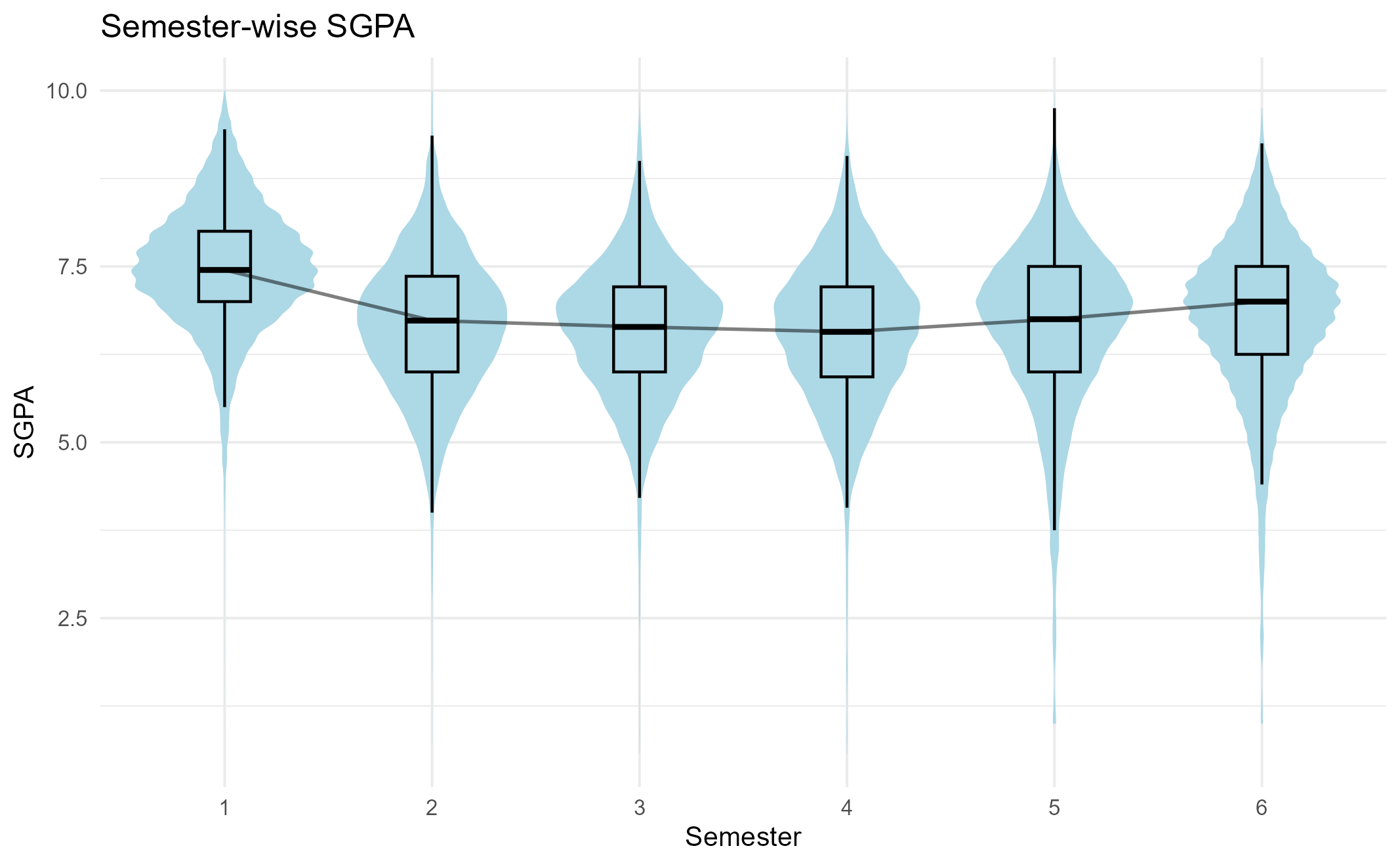 This is based on aggregated data concerning my university (120k+ entries in all). Overall median sits at 6.830/10 among arts courses. A mild U-shaped trend can be seen. by namtgr