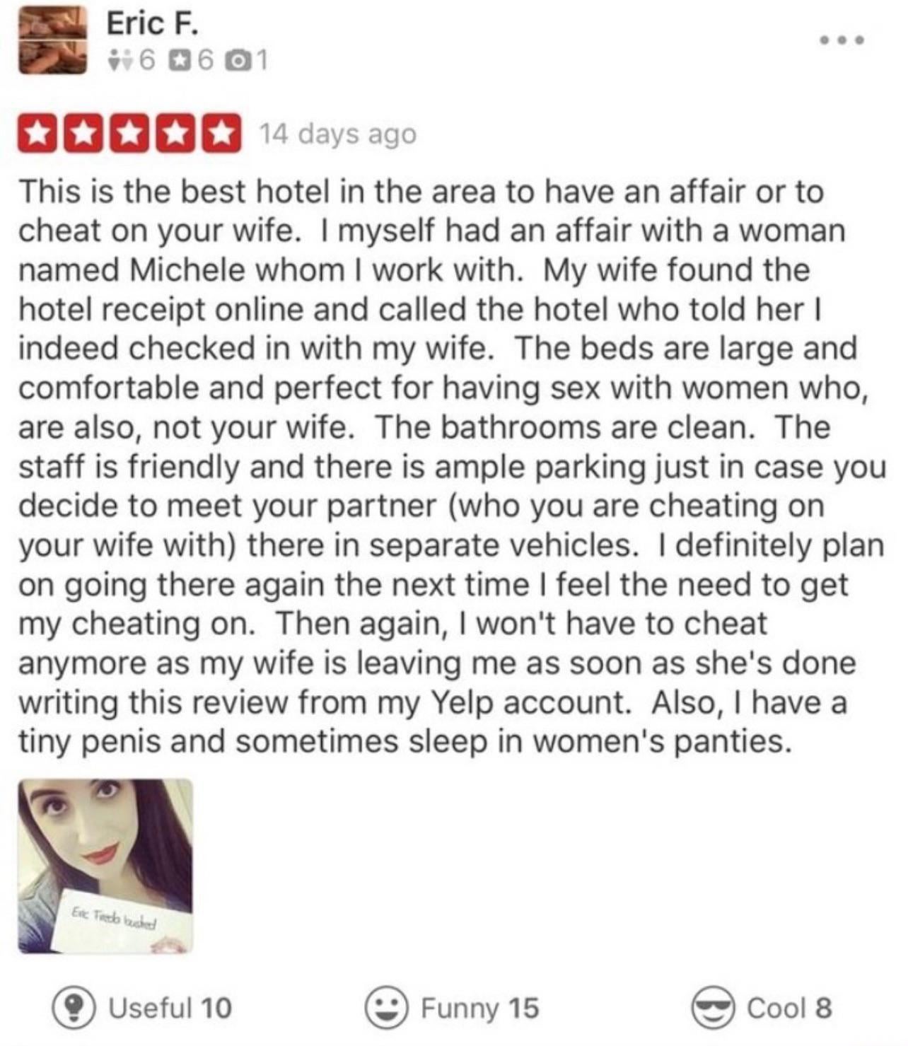 I mean fucked up situation but the hotel is catching strays. But a five star review nevertheless