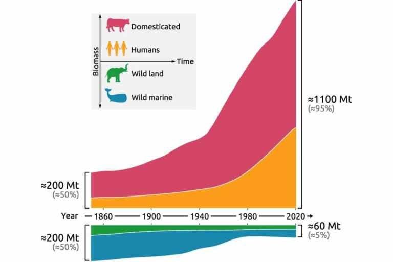 In 170 Years, Wild Mammal Biomass Has Halved, While Livestock Biomass Has Quintupled. 95% of Mammals on Earth Are Now Livestock and Humans, Leaving Only 5% for Wildlife