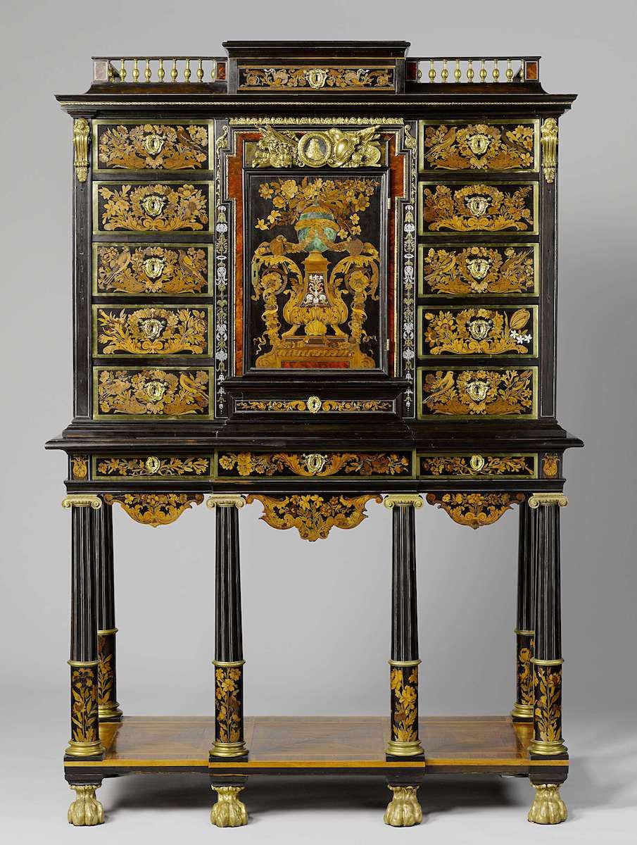 André-Charles Boulle (1642-1732) A French cabinetmaker constructed around 1670. Oak, veneered with ebony, oak, black-stained pear-wood, chestnut, sycamore, holly, boxwood, purplewood, snakewood, cedar, coconut-palm wood and other woods.